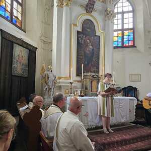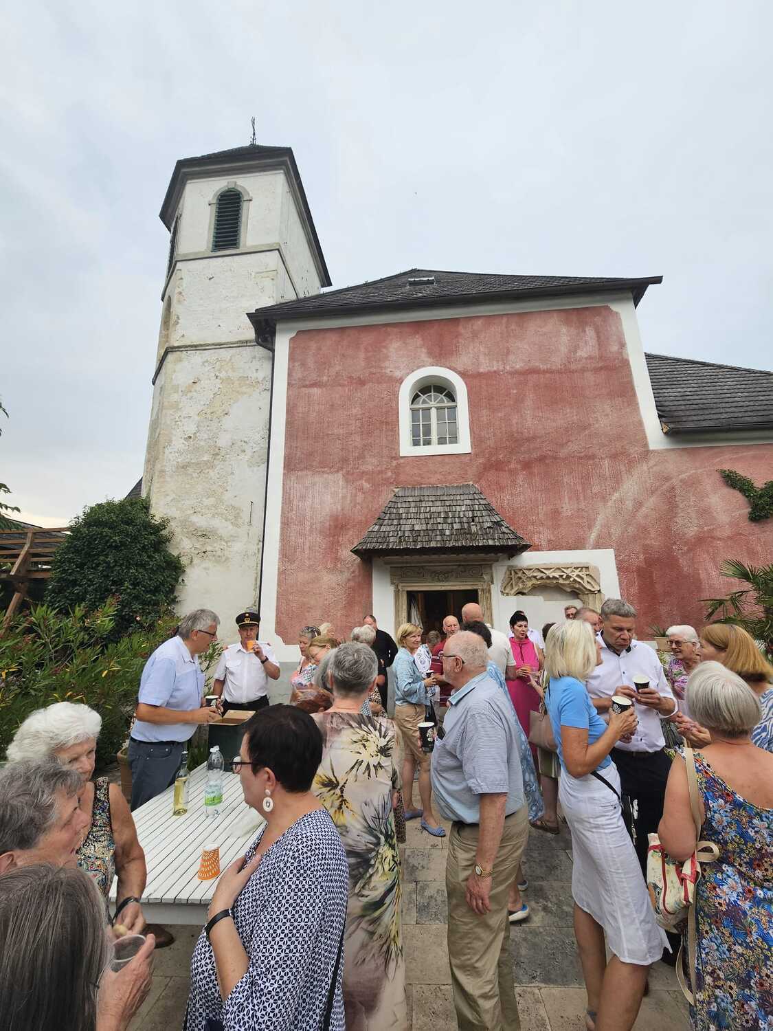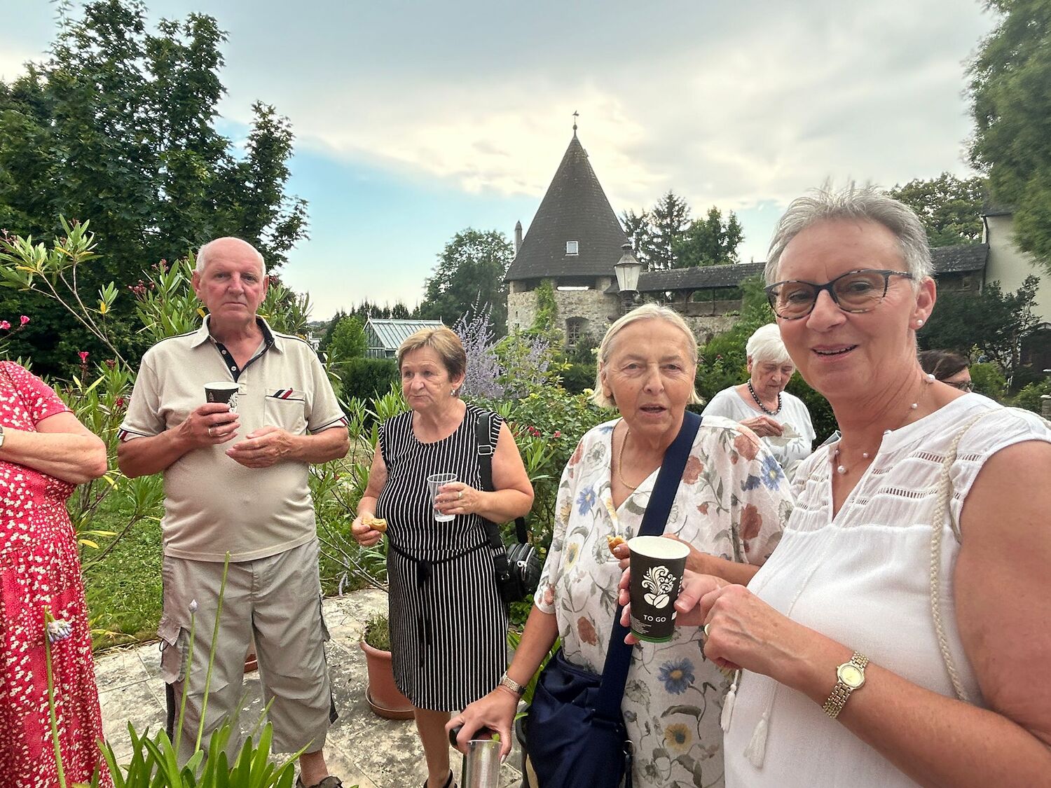 Beim Gottesdienst am 11. Juli in der Schlosskapelle Kobersdorf nahmen rund 80 Frauen und Männer teil. Das Wetter zeigte sich von seiner besten Seite. Die Hitze ging kurz vor Messebeginn merklich zurück, die Sonne war wolkenverhangen und der sich ankündigende Regen fiel erst einige Zeit später vom Himmel.