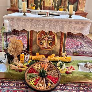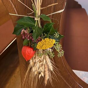 Wir danken für das Brot des Lebens, für alle Gaben, die wir im vergangenen Jahr durch Gottes Fürsorge erhalten haben: die Gaben der Natur, unsere eigenen Gaben und Talente, die Zuwendungen anderer Menschen und alles, was uns leben lässt. Wir bitten aber auch, dass wir die Fülle dieser Gaben sehen, damit wir sie mit jenen Menschen teilen, denen sie fehlen.