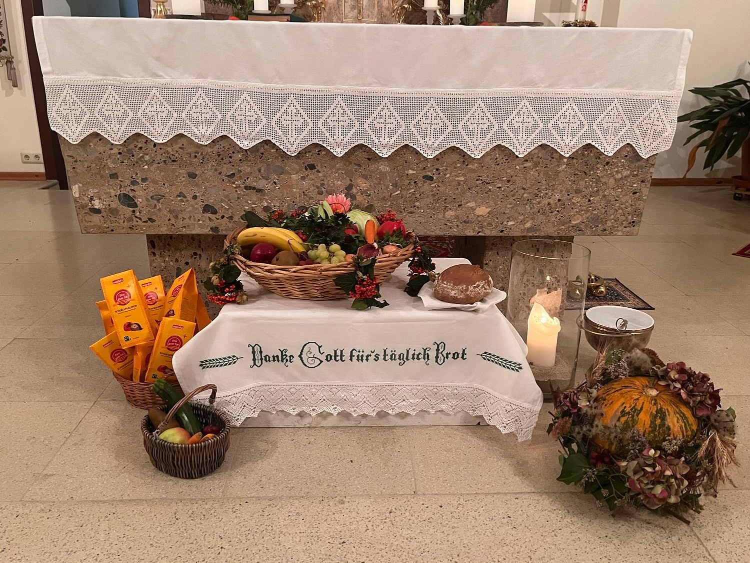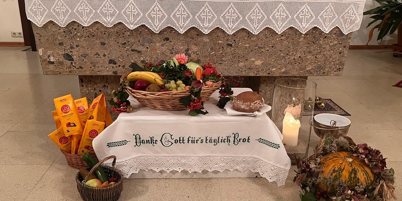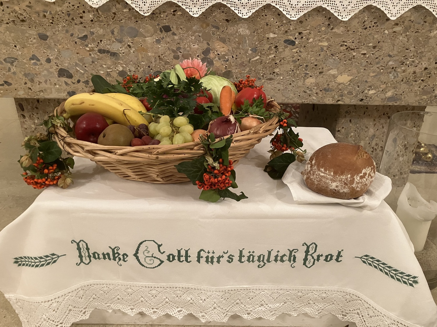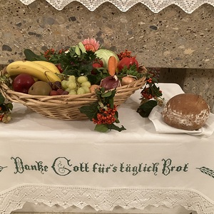 Erntedank ruft uns in Erinnerung, dass wir Teil der Schöpfung Gottes sind und dass dieser seine Schöpfung uns anvertraut hat. Zur Feier und aus Dank werden die Kirchen mit Früchten, Gemüse, Blumen und Brot geschmückt.