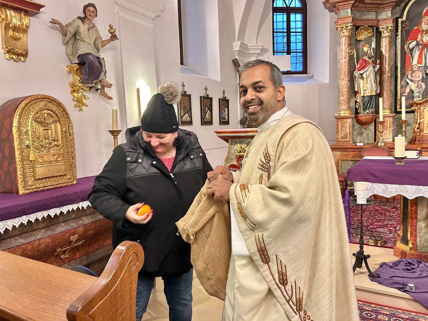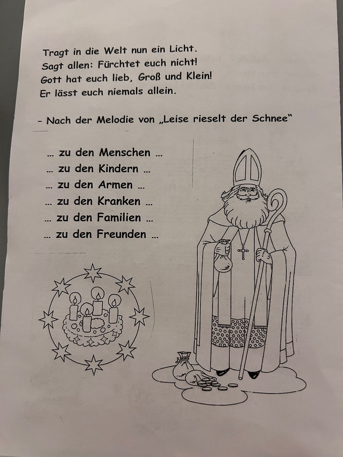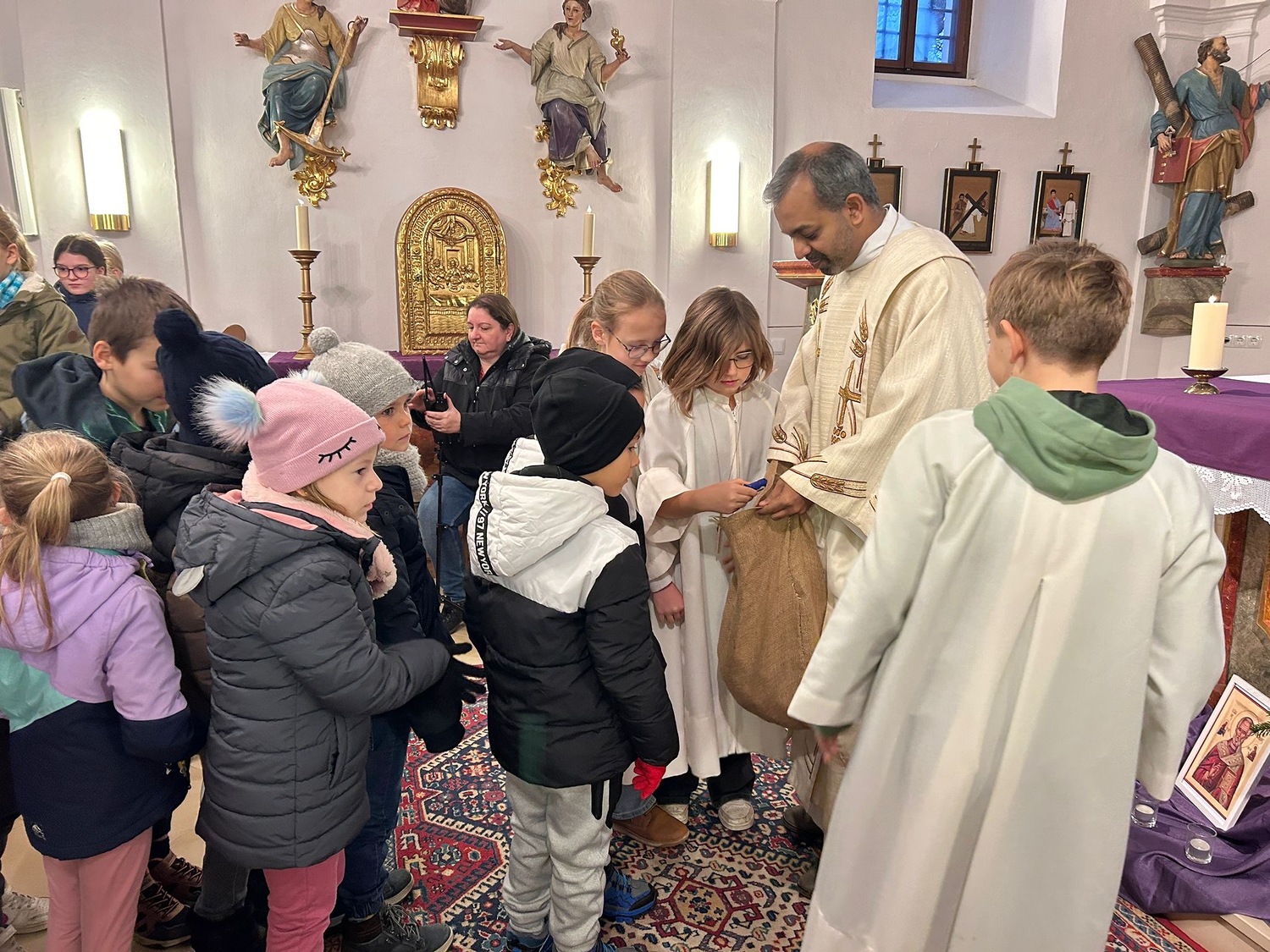Die Geschichte vom Kornwunder, die Frau Religionslehrerin Doris Horvath vorlies, sollte den Kindern zeigen, wie viel Gutes Bischof Nikolaus den Menschen getan hat. Auch Pfarrer Shinto ermutigte die Kinder in der Predigt, dem Beispiel des Hl. Nikolaus zu folgen und anderen Menschen eine Freude zu machen.