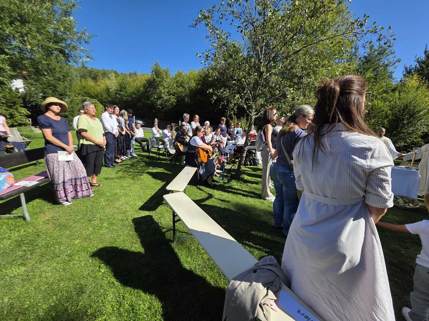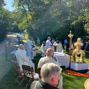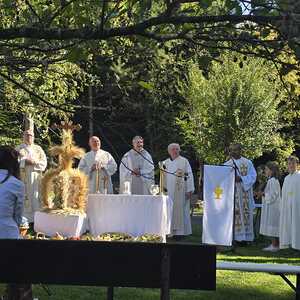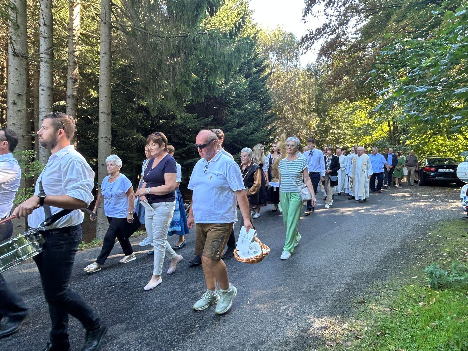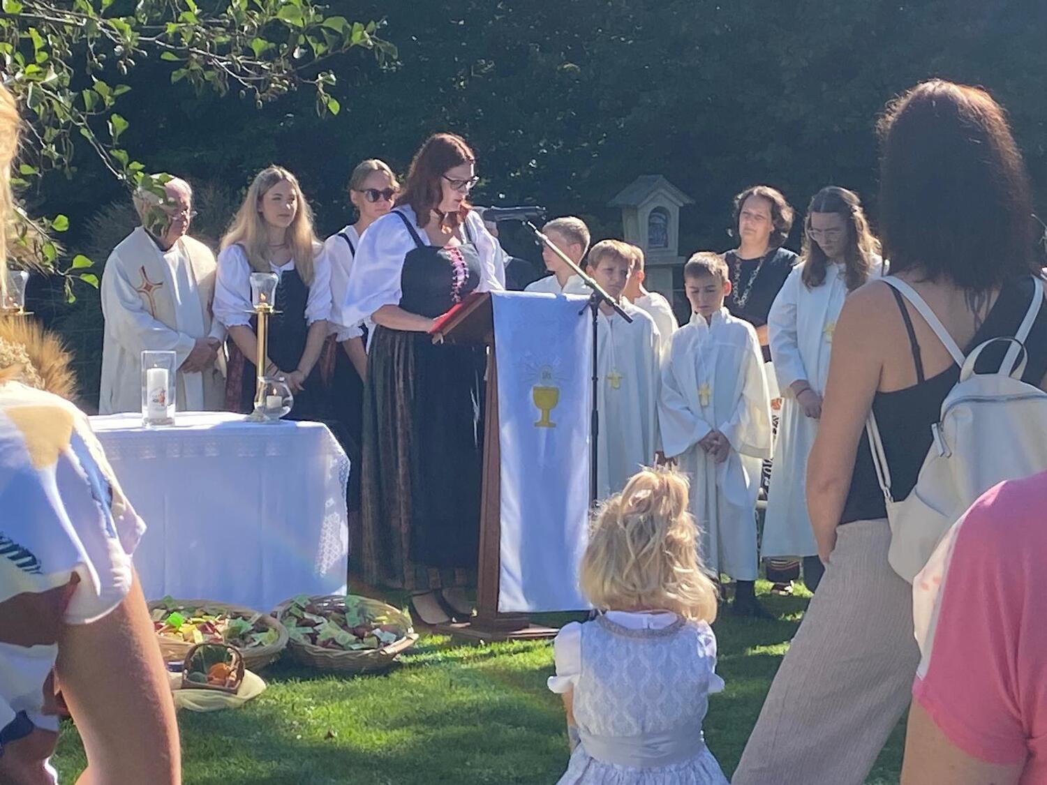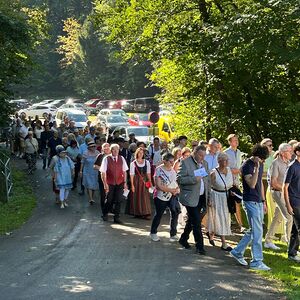 Dieses besondere Jubiläum feierten wir heuer im Rahmen des Erntedankfestes – selbstverständlich direkt am Kreuzweg. Der feierliche Festzug wurde von der Musikkapelle Kobersdorf musikalisch würdevoll angeführt. Der gemeinsame Weg begann bei der 13. Station und führte uns entlang des Weges bis zur 15. Station, wo die Heilige Messe unter freiem Himmel gefeiert wurde.