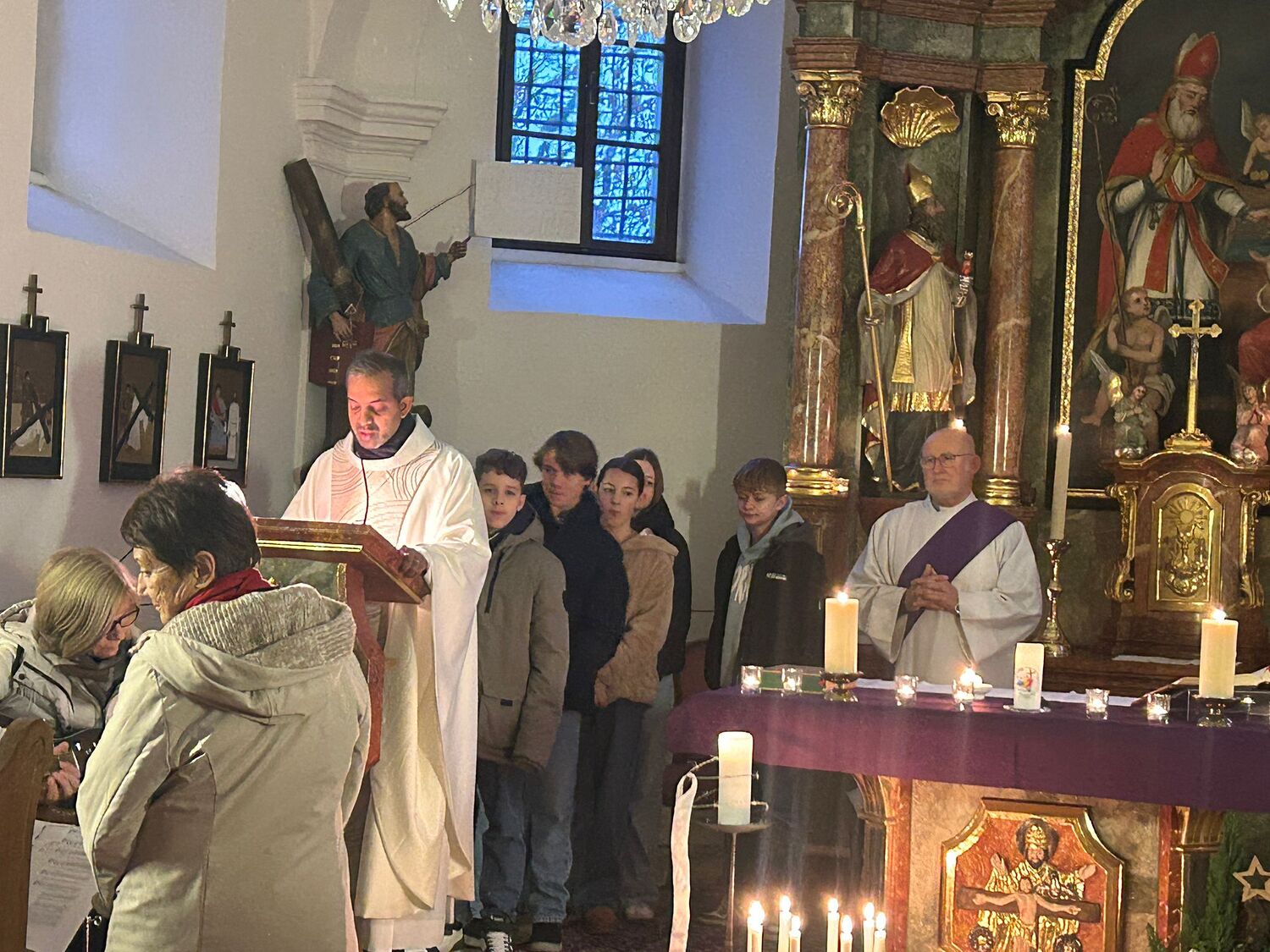 Im Schein vieler Kerzen feierten die Firmlinge des Pfarrverbandes eine eindrucksvolle Rorate, die ganz im Zeichen des Heiligen Nikolaus stand. In den Texten der Messfeier wurde deutlich, wie aktuell sein Vorbild auch heute noch ist: Nikolaus war ein Mensch, der die Not der Armen sah, der teilte, was er hatte, und der Gutes tat, ohne Dank zu erwarten. Seine Haltung der Nächstenliebe lädt uns ein, den Kern unseres christlichen Glaubens ernst zu nehmen und ihn im Alltag sichtbar zu machen.