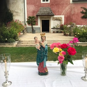 Zum Abschluss des großen Frauentages wurde eine Marienandacht im Schloßgarten gefeiert.