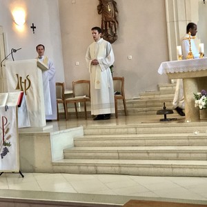 Diesmal durfte ich in meine Pfarre einladen. Treffpunkt war um 16 Uhr bei Kaffee und Kuchen im Pfarrheim Lackenbach. Um 18 Uhr feierten wir dann gemeinsam mit Hauptzelebrant Pfarrer Stefan Jahns eine Heilige Messe in der Pfarrkirche Lackenbach, in der auch um geistliche Berufungen gebetet wurde.