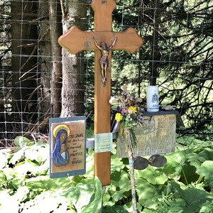 Am vierten und letzten Tag wurden wir mit Nebel und Regen geweckt, was der guten Laune und dem Ziel ,der Wallfahrtskirche in Mariazell näher zu kommen, nichts anhaben konnte. Nach gut 20 km Fußweg, Rosenkranzgebet und gegenseitigen Aufmuntern haben wir um ca. 13:00 Uhr das „Luckerte Tor“ am Kreuzberg durchschritten und uns über die Ankunft in Mariazell gefreut. Dort trafen wir unsere Buswallfahrer aus dem Pfarrverband Hl. Nikolaus.