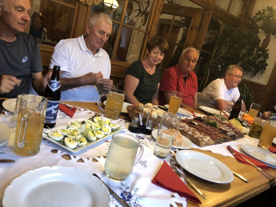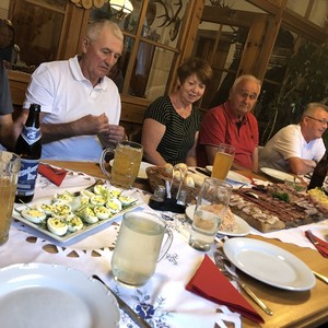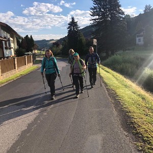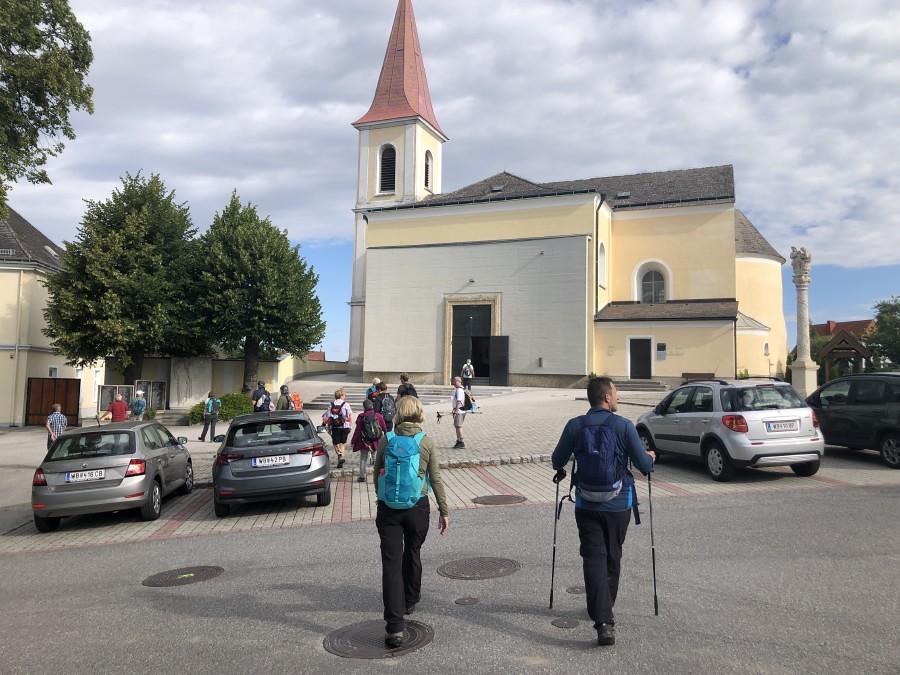 Am ersten Tag führte uns der Pilgerweg über Hochwolkersdorf, Pitten und Breitenau nach Grünbach am Schneeberg zur Schubertlinde, wo wir im Gasthof Mohr nach rund 50 km Fußmarsch den Tag ausklingen ließen. Ein besonderes Erlebnis bei dieser Wallfahrt sind die Rosenkranzgebete während des Gehens. „ Beten mit den Füßen“,nachdenken über das Leben, gute aufbauende Gespräche führen, wenn es einmal schwer fällt den Weg zu gehen.