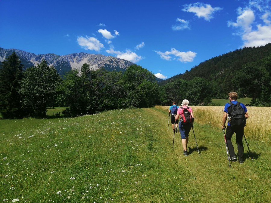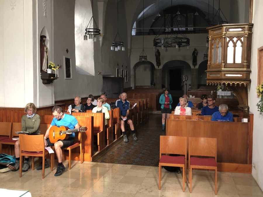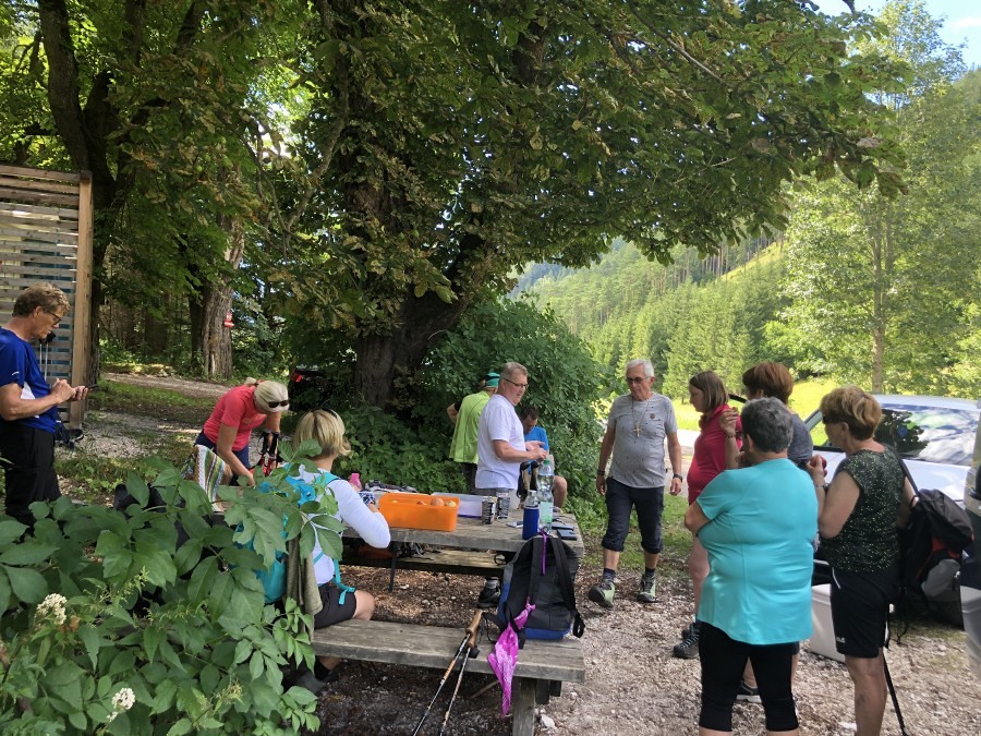 Am nächsten Tag ging es nach einem stärkenden Frühstück und dem Morgenlob weiter Richtung Puchberg, Mamauwiese zur Voiskapelle und Schwarzau im Gebirge zu unserer nächsten Station zum „ Mitterhofer-Bauer“, wo wir uns mit einem Abendlob ,für den reich beschenkten Tag, bedankten. Wieder waren rund 30 km Fußweg geschafft, wobei besonders das letzte steile Stück des Weges eine besondere Herausforderung war.