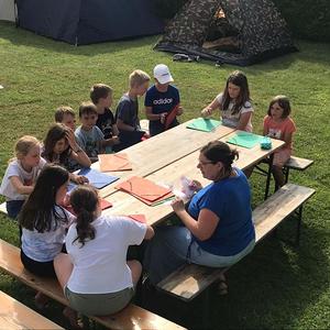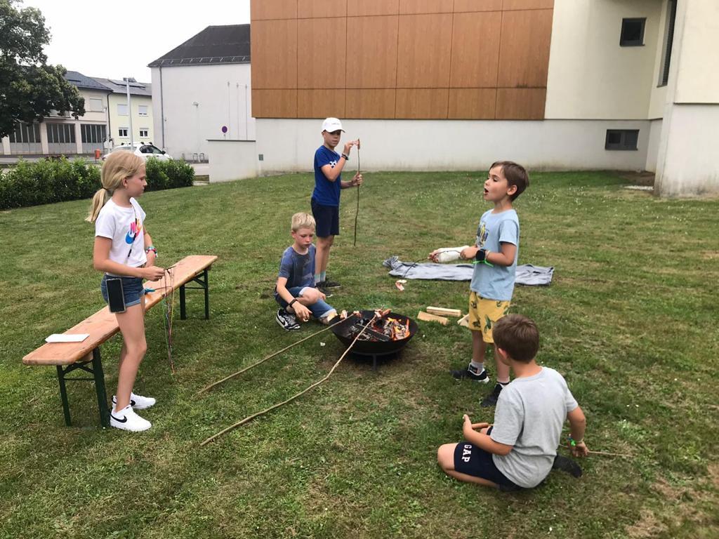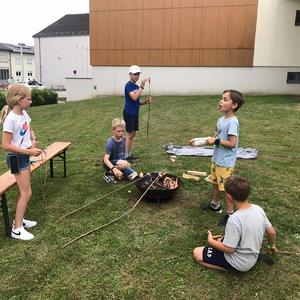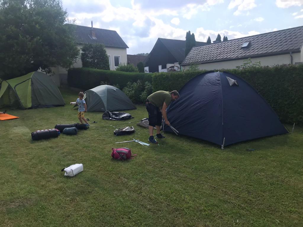 Ein stürmisches Gewitter ließ die Kinder leider nicht in ihren Zelten die Nacht verbringen. Trotz allem wurde die Nacht gemeinsam verbracht – im angrenzenden Pfarrsaal.