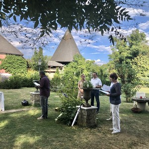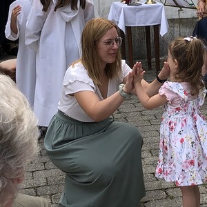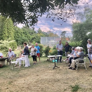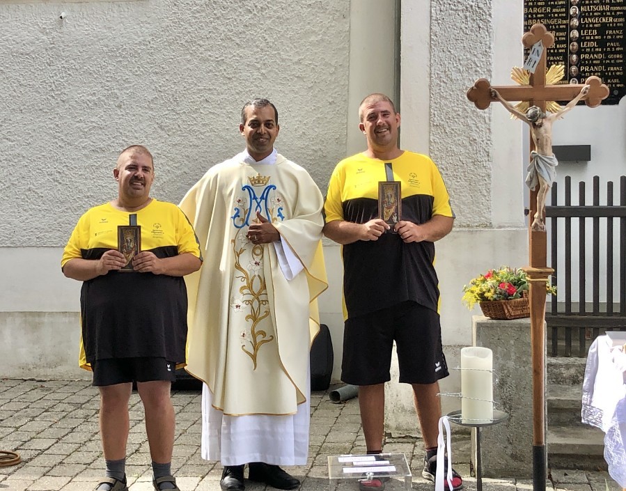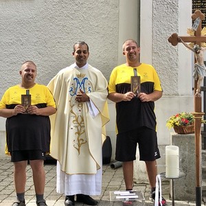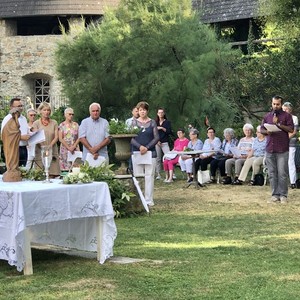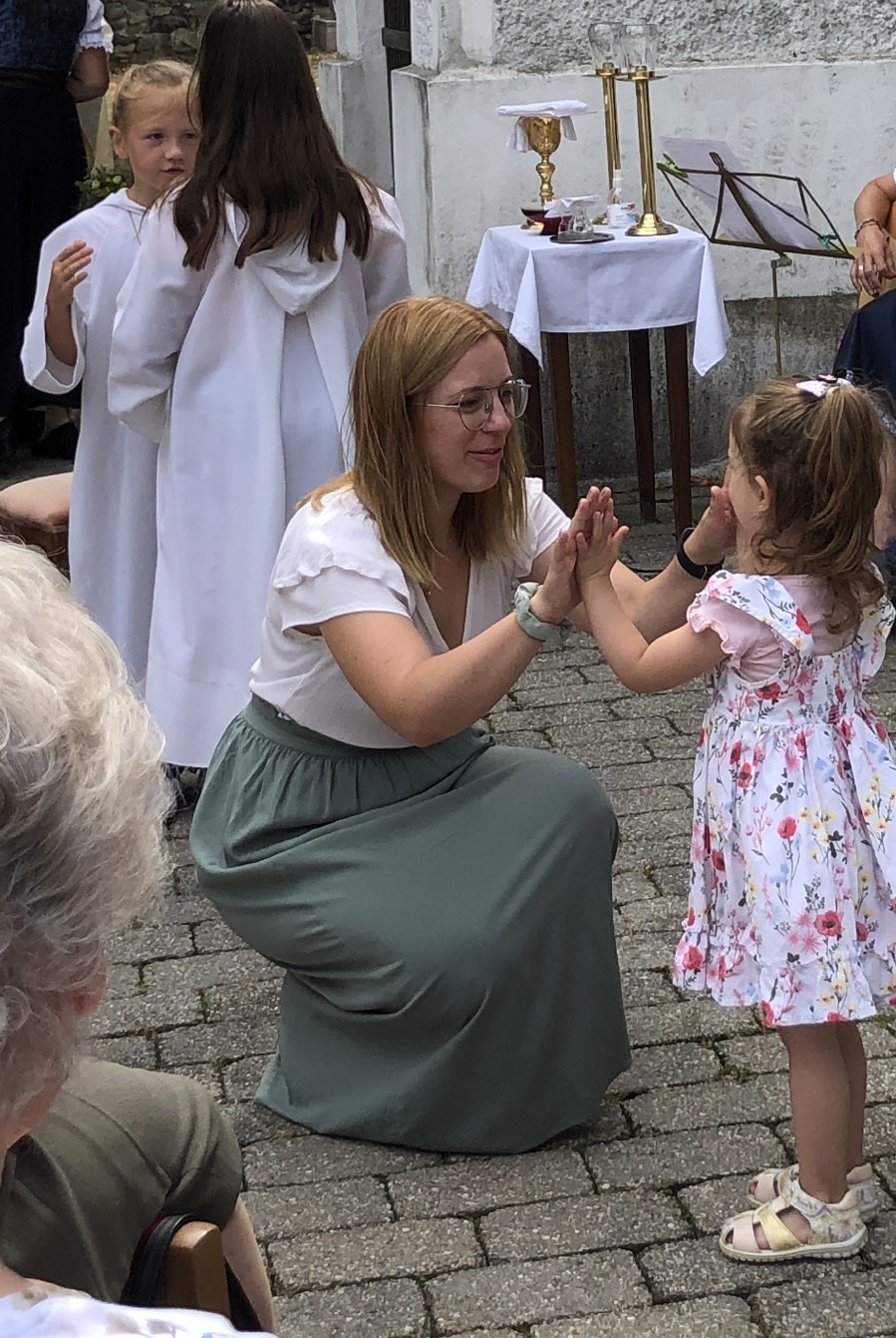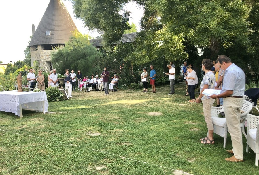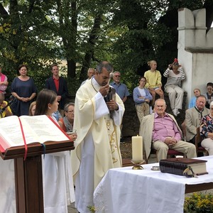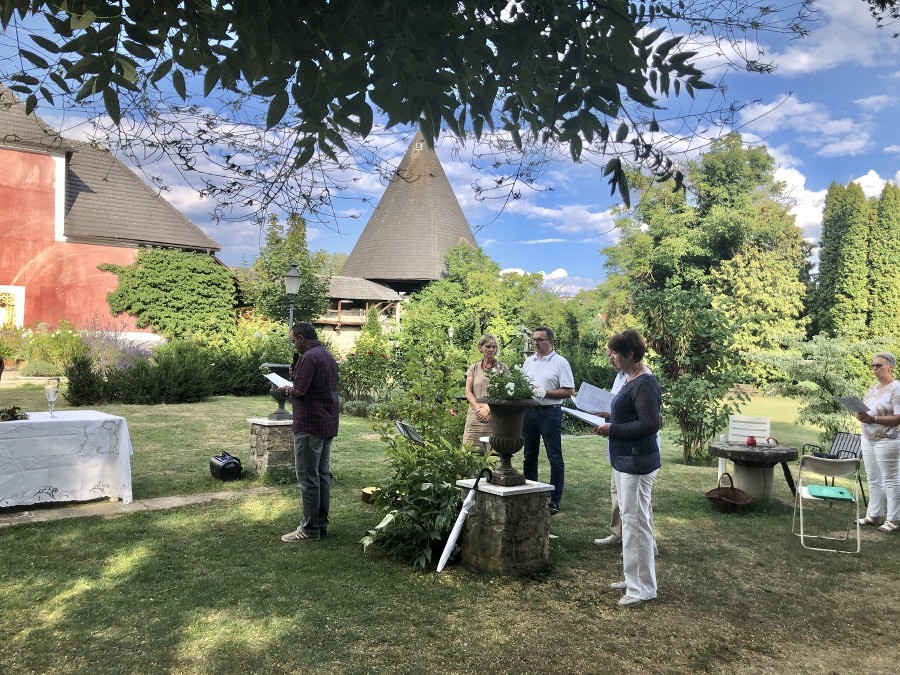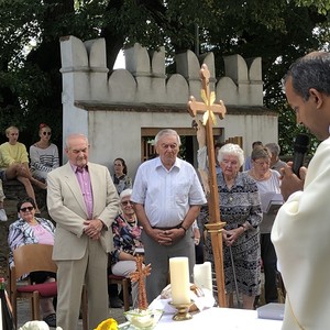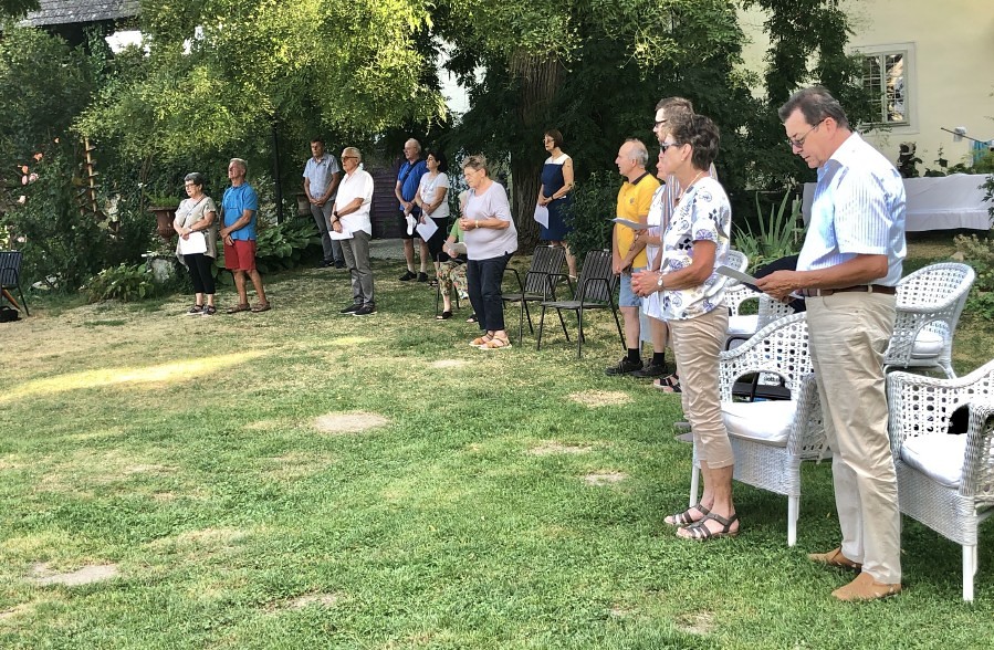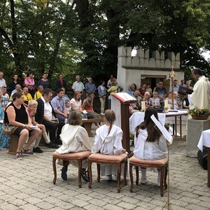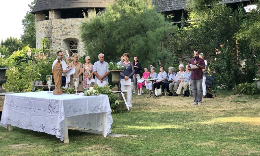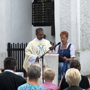Als Abschluss des Marienfeiertages fand dann am Abend noch eine Andacht im Schloßgarten statt, zu der alle Gläubigen des Pfarrverbandes geladen waren und auch zahlreich teilnahmen.