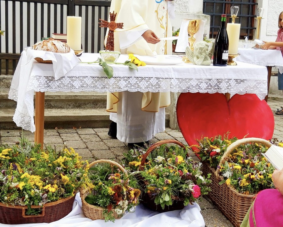 Im Rahmen des Gottesdienstes fand auch die Kräuterweihe statt – danke den tüchtigen Damen für das Sammeln und Binden der Kräuter, die von den Gottesdienstbesuchern auch mitgenommen werden durften.
