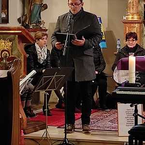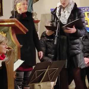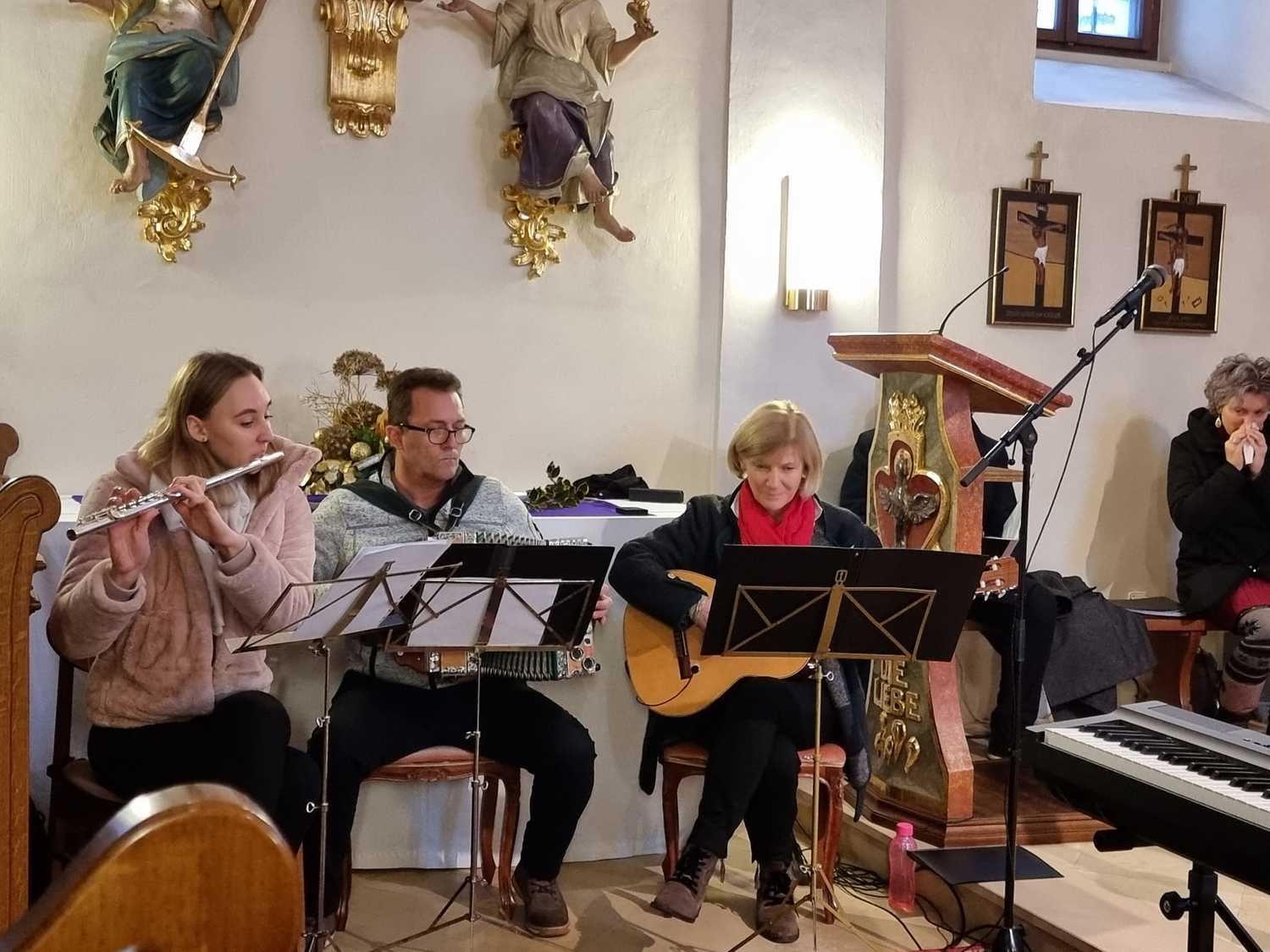 Zwischendurch haben Alina Leopold (Querflöte), Christa Reiner (Gitarre) und Alexander Hemmerich (Knöpferlharmonika) einige weihnachtliche Instrumentalstücke gespielt.