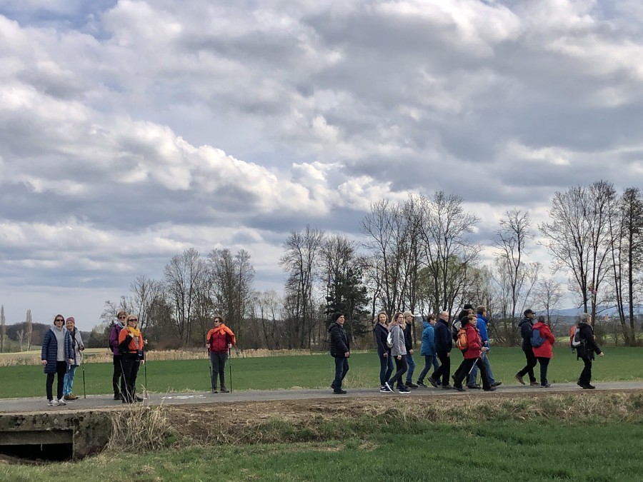 Nach dem Pilgersegen und einem gemeinsamen Gebet zum heiligen Martin brach die Gruppe nach Markt Sankt Martin auf. Bei der ersten Statio bedachten die Pilgerinnen und Pilger in einem Wechselgebet, was ihnen heilig ist, was sie schützen und wofür sie sich einsetzen wollen. Die Sorgen um die Schöpfung wurden Gott ebenso anvertraut, wie das persönliche Engagement für Umwelt und Gesellschaft. Bei der zweiten Statio wurde um den Schutz der Gottesmutter Maria gebetet.