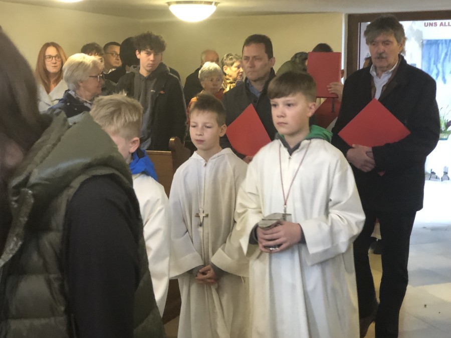 Beim Einzug in die noch völlig dunkle Kirch ruft der Priester dreimal: