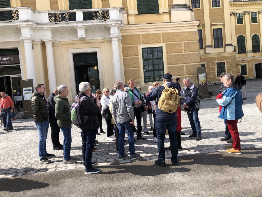 Im Anschluss an die Hl. Messe erfolgte – in zwei Gruppen – ein geführter Rundgang durch den Schlosspark und eine Besichtigung der Prunkräume des Schlosses Schönbrunn. Nach dem Mittagessen ging es mit dem Bus über die Höhenstraße zum Kahlenberg, wo die Gläubigen einen herrlichen Ausblick auf die Bundeshauptstadt Wien genießen konnten. Ein Muss war natürlich auch eine Kurzvisite in der St. Josef-Kirche am Kahlenberg.