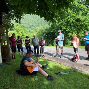 Am nächsten Morgen, 6.7.2023, gleich nach dem Morgengebet, pilgerten wir Richtung Gscheidlhöhe, Kaltenbach und nach rund 16km kamen wir in Frein an der Mürz an. Alle freuten sich schon auf den bevorstehenden Gottesdienst und auch die Mesnerin hat uns schon erwartet. Die Messe wurde durch Pfarrer Shinto sehr schön und besinnlich gestaltet. „Geh mit uns auf all unseren Wegen“ war zu jeder Zeit spürbar. Das Pilgern im Glauben innerhalb der Gemeinschaft, mit dem Ziel, unserer Mutter Gottes näher zu kommen, war noch einen Tag von uns entfernt. Den Abend und die Nacht verbrachten wir bei der Jausenstation Leitner. Nach dem Abendessen wurde der Tag mit einem sehr schönen Liederabend und guter Stimmung beendet.