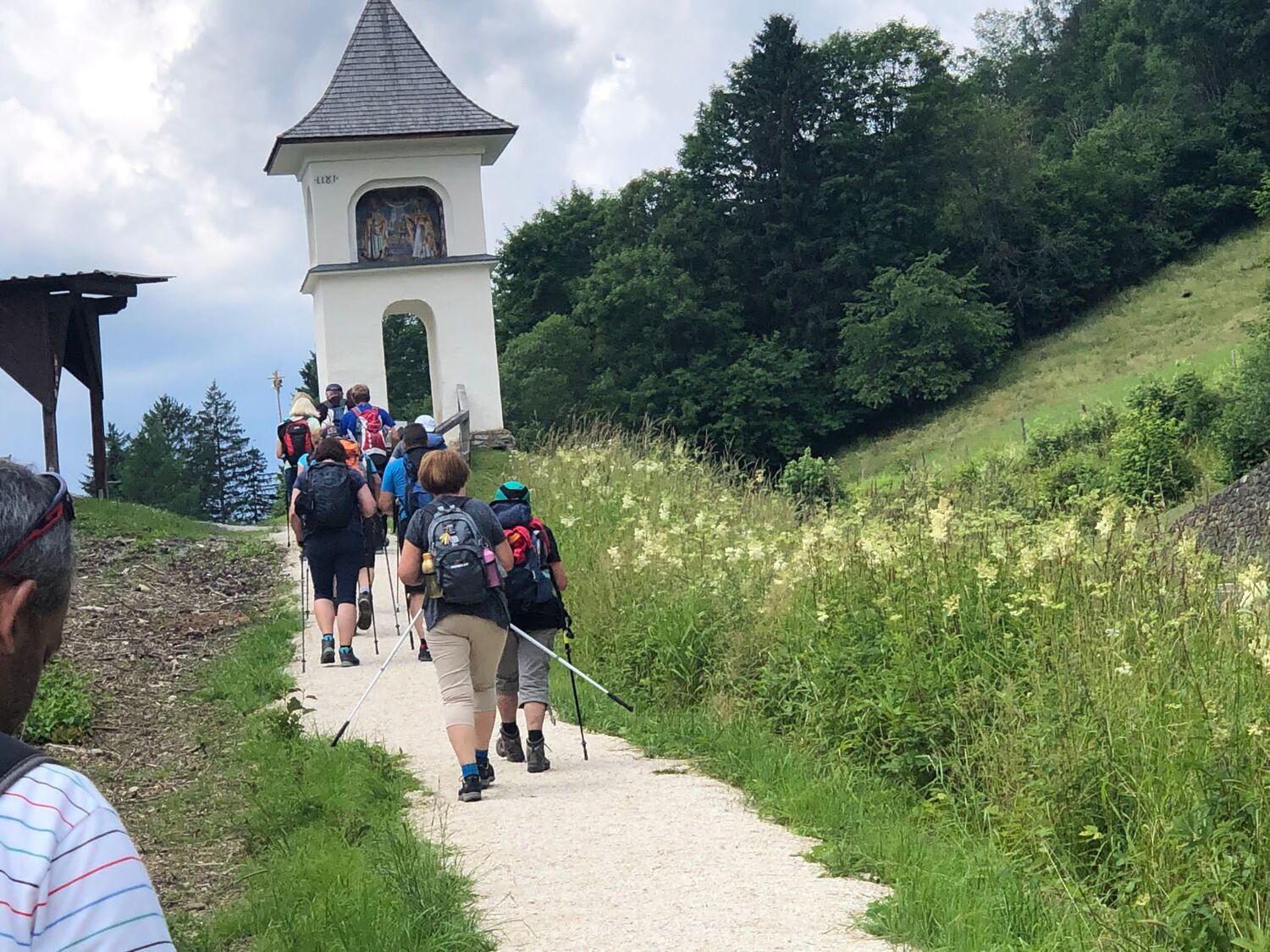Unter dem Motto „Lasst uns miteinander, gehen, beten, singen und feiern“ fand heuer die 33. Fußwallfahrt nach Mariazell der Pfarre Kobersdorf statt. 18 Pilgerinnen und Pilger, Begleitfahrzeug und natürlich unser Pfarrer Shinto trafen sich am Mittwoch, dem 5.7.2023 und nach einer kurzen Andacht mit Reisesegen konnte die Wallfahrt beginnen. Diesmal fuhren wir mit dem Zug nach Puchberg am Schneeberg und die erste Etappe führte uns u.a. über die Maumauwiese und Bacherlwirt durch wunderschöne Landschaften ins Preintal. Rosenkranz beim Gehen in der Gruppe zu beten ist eine tolle Erfahrung. Das Wetter war gerade richtig und trotz einem kurzen Gewitterregen war die Stimmung sehr gut. Gut 30 km waren geschafft und die Nacht verbrachten wir auf einem Reiterhof im Preintal.