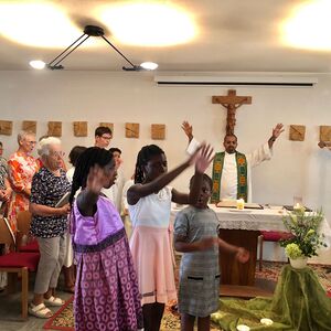 Die Einladung zu Kommen von Pfarrer Shinto freute uns sehr. Nachdem wir einmal wegen Schlechtwetter absagen mussten, gelang es diesmal sogar sehr spontan. Wir, das sind die Kinder, Jugendlichen und Sozialpädagog/innen der Sozialtherapeutischen Wohngemeinschaft Pronegg aus Kotezicken im Südburgenland. Eine lange Freundschaft verbindet uns mit Pfarrer Shinto. Unsere Ministranten (auch in Kotezicken) waren sofort dabei zu ministrieren und kurz vorher abgesprochen gestalteten wir den Gottesdienst mit. Ratsvikarin Christa spielte mit der Gitarre „Gottes Liebe ist so wunderbar....“ , dieses Lied begleitete unsere Kinder auch durch die Corona-Zeit. Die Predigt von Pfarrer Shinto war passend, denn wir haben einen großen Garten und die Kinder helfen beim Pflegen fleißig mit. Nach dem Gottesdienst tobten sich die Kinder ein wenig aus, bis Mittagessen kam. Danke der Pfarre Kobersdorf für die nett angerichteten Tische und Getränke, sowie für Kuchen und Kekse. Danach ging es zum Naturbadeteich! Die Abkühlung tat allen gut und als Abschluss gingen wir mit Pfarrer Shinto noch auf ein Eis!