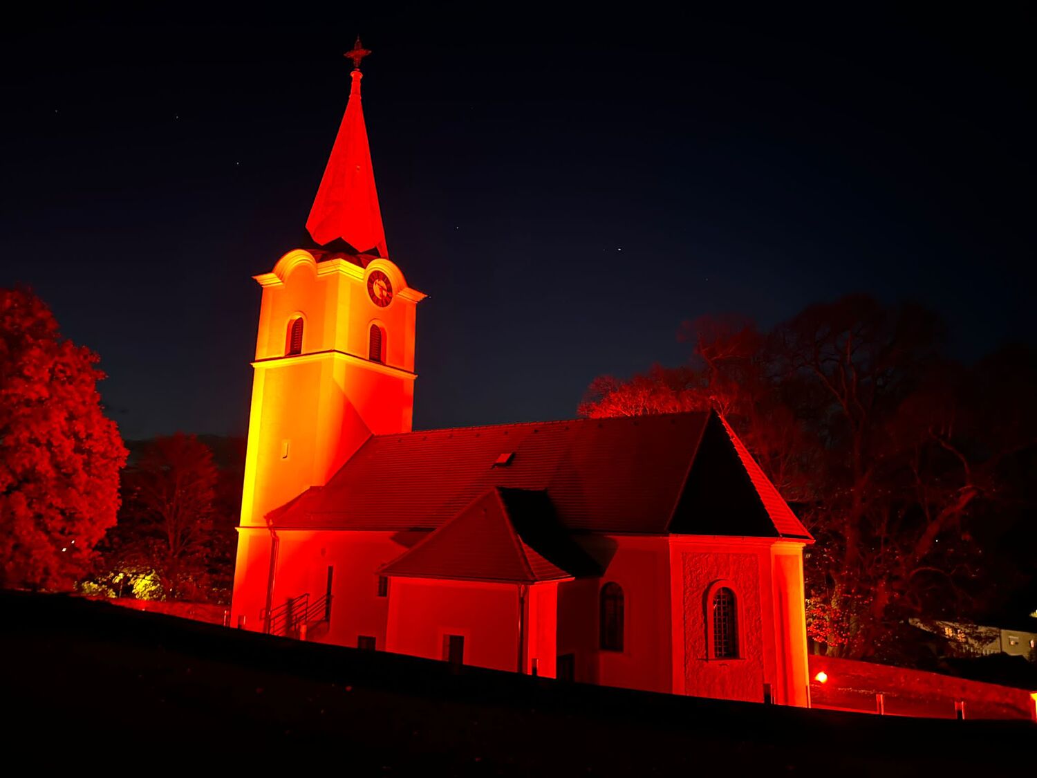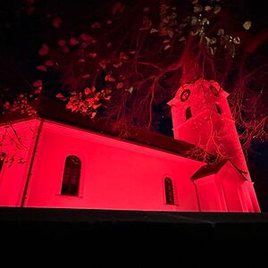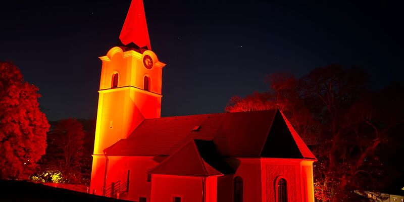 Auch unsere Kirche in Kobersdorf strahlte in schönem ROT.