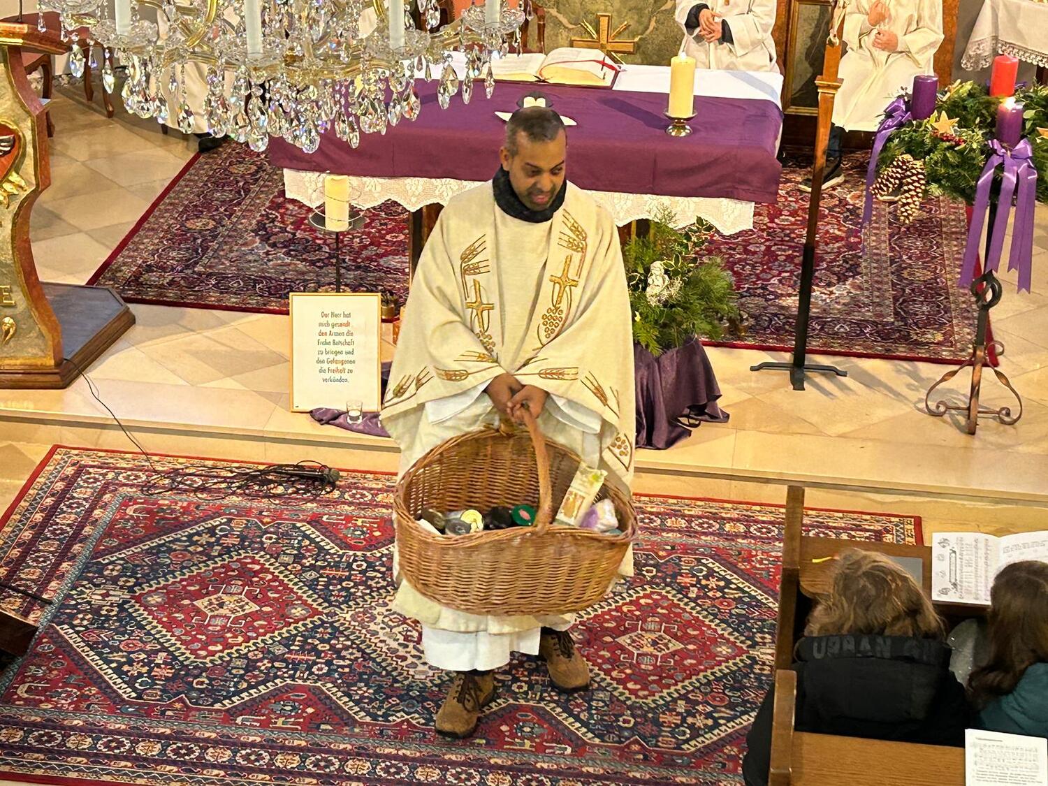 Pfarrer Shinto appellierte auch an die Besucher im Gottesdienst, das fortzusetzen, was den heiligen Nikolaus ausgemacht hat, sich „denen zuzuwenden, denen es nicht so gut geht wie uns.“ Und er bat darum, an der Nikolausaktion mitzumachen, und haltbare Lebensmittel für die Pannonische Tafel zu spenden.