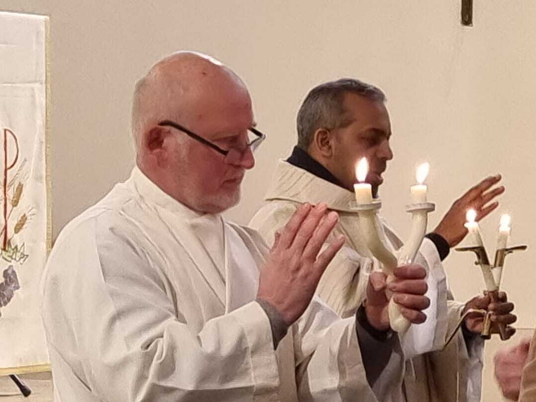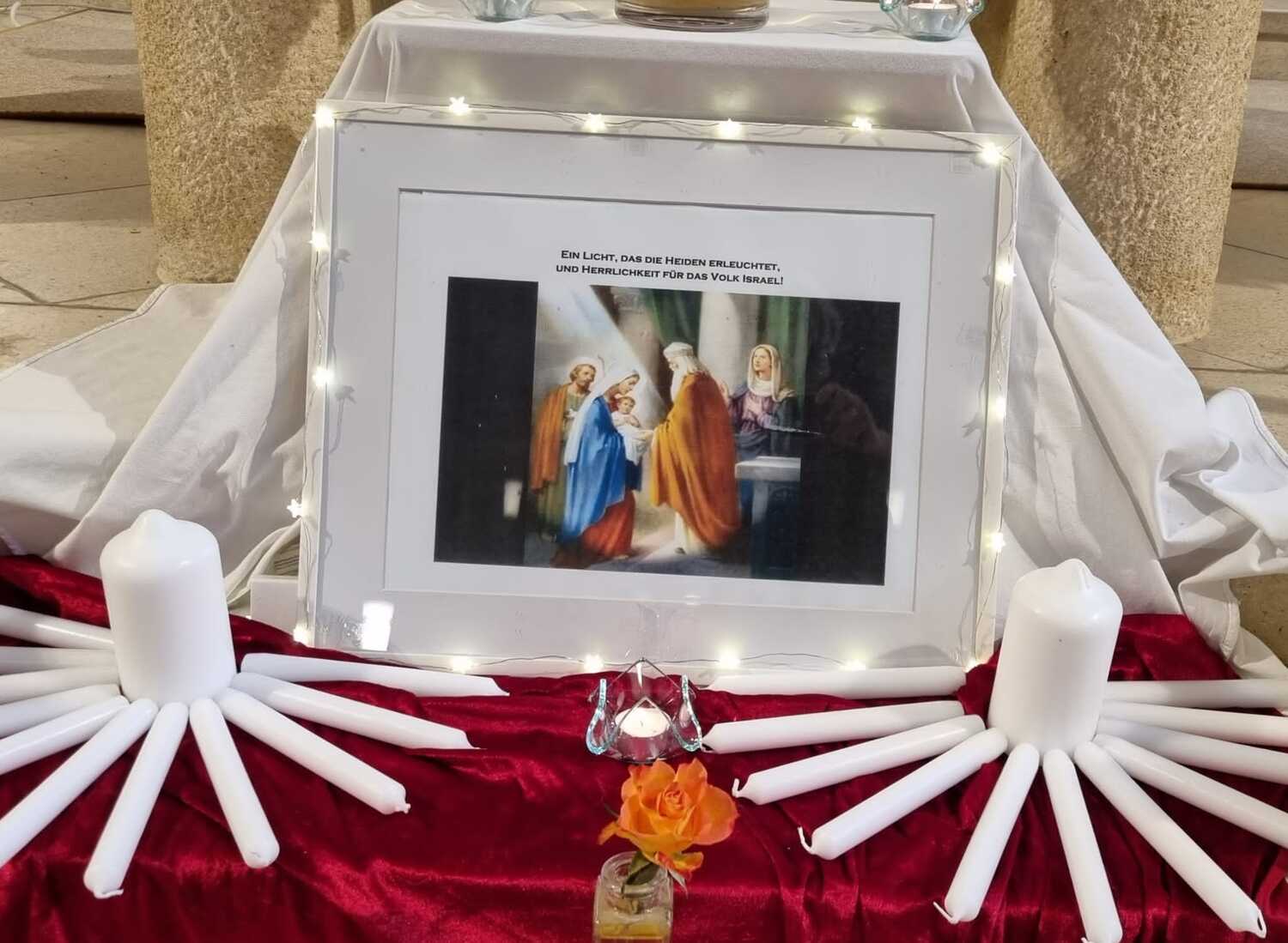 Die brennenden Kerzen sind Symbol für Jesus als „das Licht der Welt“.