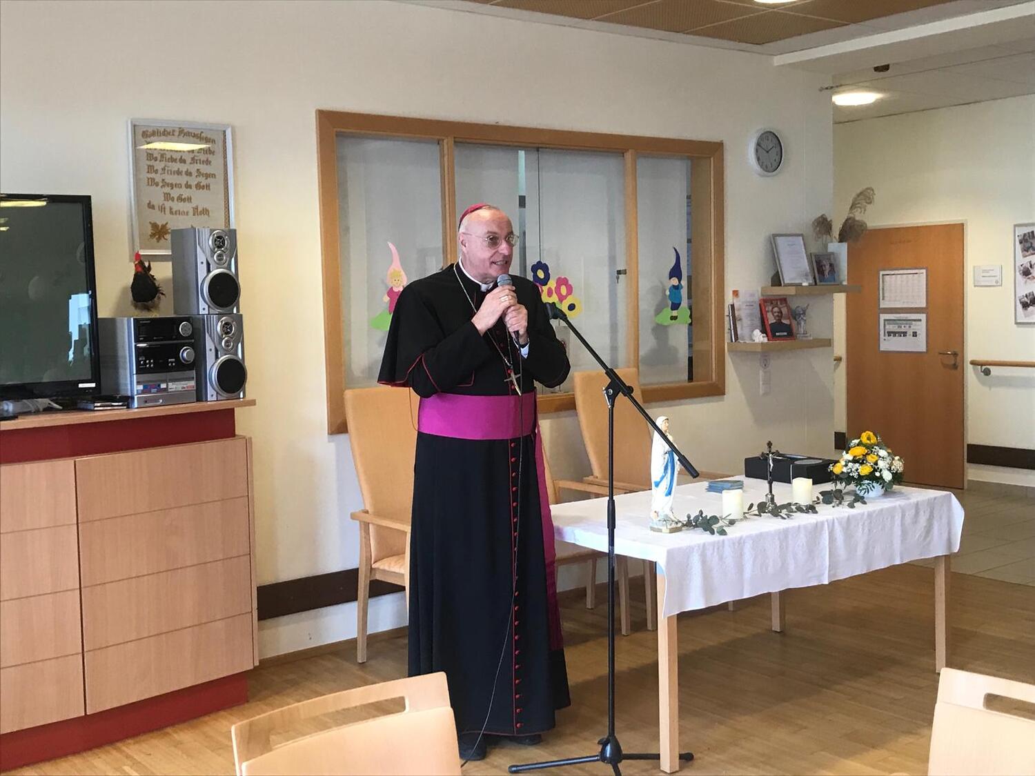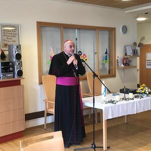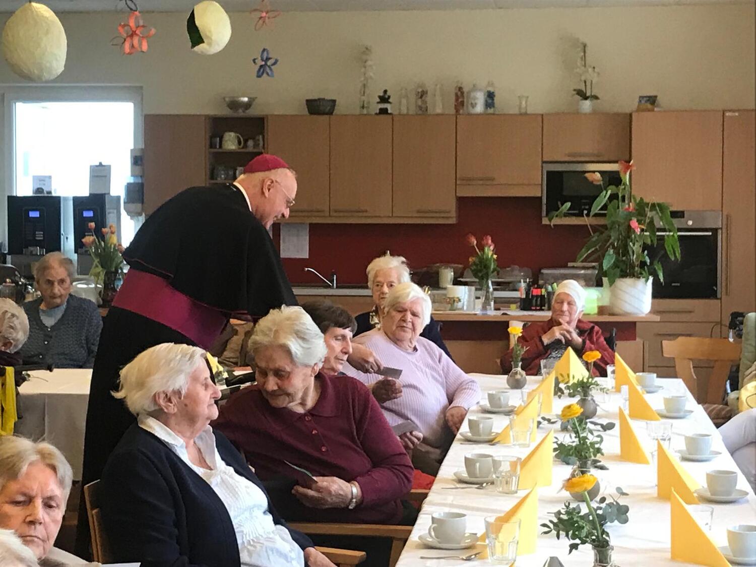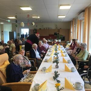 Im Anschluss konnte bei einer Agape im Pfarrheim Lackenbach der Bischof mit den Menschen ins persönliche Gespräch kommen. Bevor er dann nach dem Mittagessen weitere Filialen besuchte, traf er noch den Pfarrgemeinderat von Lackenbach. Berührende Begegnungen durften wir im Anschluß im Pflegekompetenzzentrum Lackenbach erfahren.