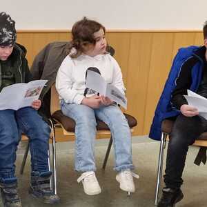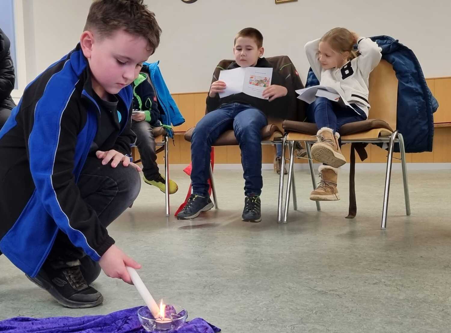 Am Donnerstag, dem 7. März luden die Erstkommunionkinder zu einem Kreuzweg in den Pfarrgarten Lackenbach ein. Wegen des unbeständigen Wetters wurde die Andacht in den Pfarrsaal verlegt.