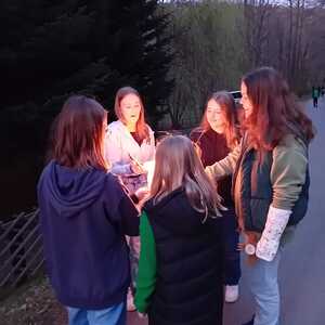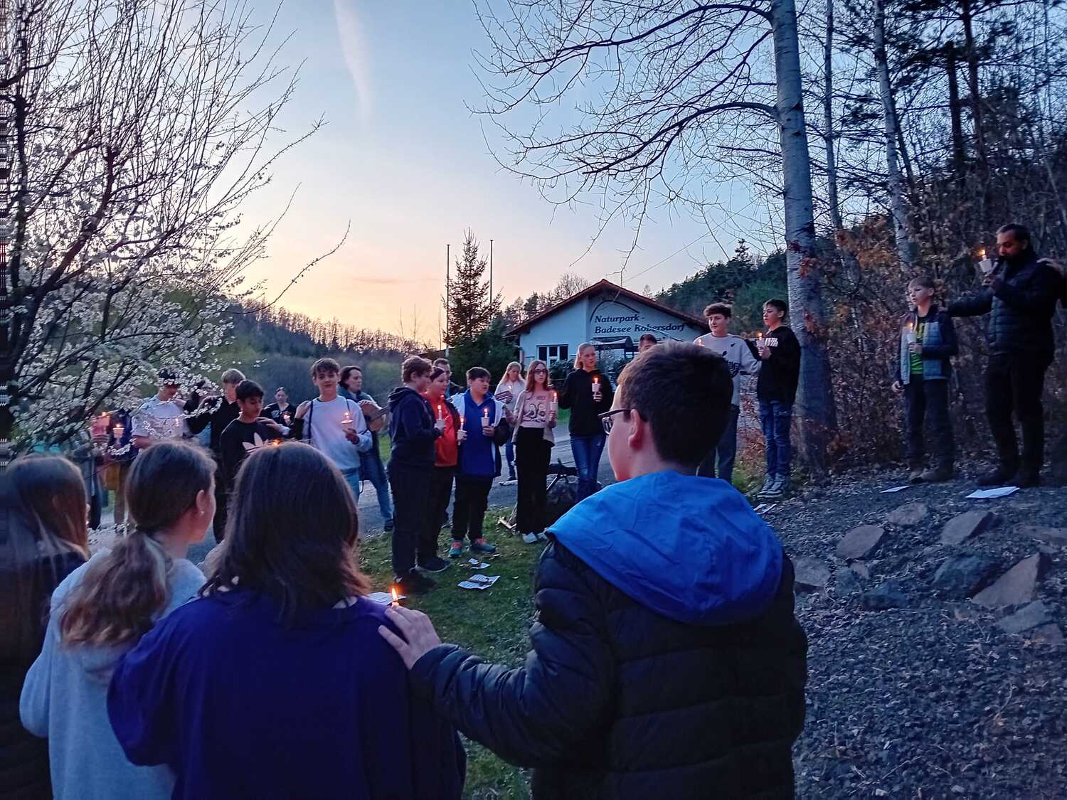 Bei der letzten Station „Jesus wird ins Grab gelegt“ wurde der Kreuzweg mit Kerzen, Liedern und guten Gedanken an alle verstorbenen Freunde, Verwandten und Bekannten und dem Glauben an das ewige Leben beendet. Pfarrer Shinto sprach das Segensgebet und mit dem Lied „Voll Vertrauen gehen wir“ machten wir uns auf den Rückweg.