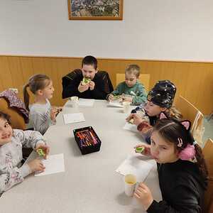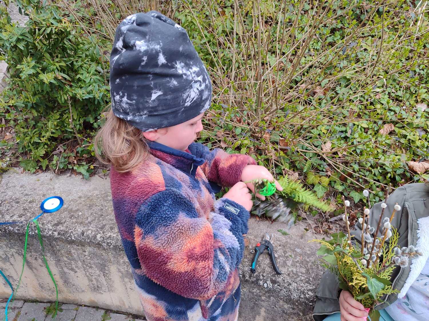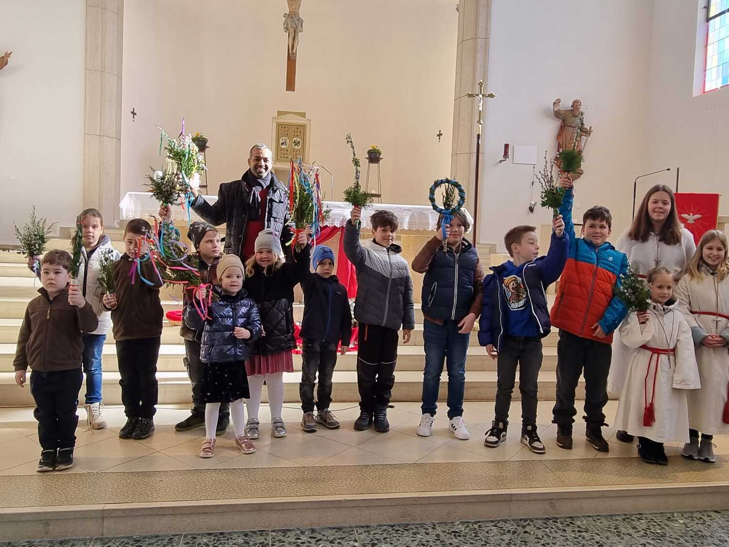 Die Palmbuschen, die von den Kindern in die Kirche getragen wurden, wurden ein paar Tage davor gemeinsam im Pfarrheim gebunden. Die Freude darüber war den Kindern ins Gesicht geschrieben.