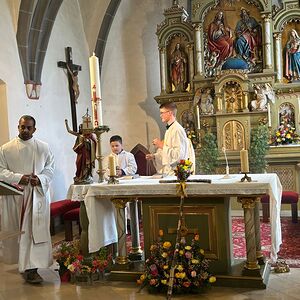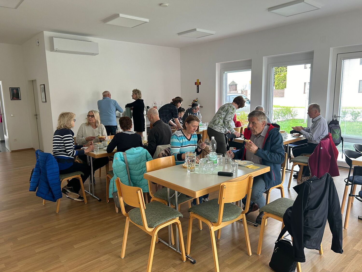 Die spirituelle Wanderung endete erstmal im Pfarrheim Weppersdorf, wo wir mit einem großzügigen Frühstück versorgt wurden. Gestärkt zogen wir alle gemeinsam in die Pfarrkirche Weppersdorf ein, wo Gastpfarrer David Gold und Pfarrer Shinto einen wunderschönen Gottesdienst mit uns feierten.