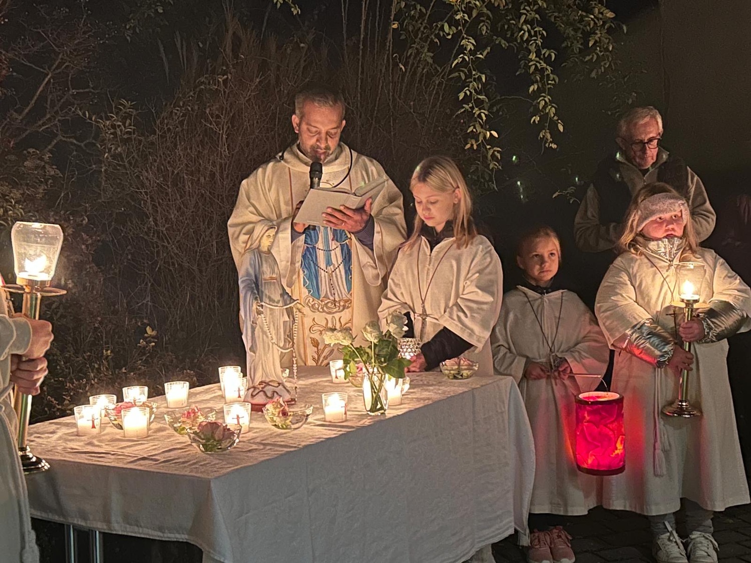 Die anschließende Lichterprozession in den Pfarrhofgarten, wo noch eine kleine Marienandacht gefeiert wurde, war eine wunderschöne Ergänzung des stimmungsvollen Abends.