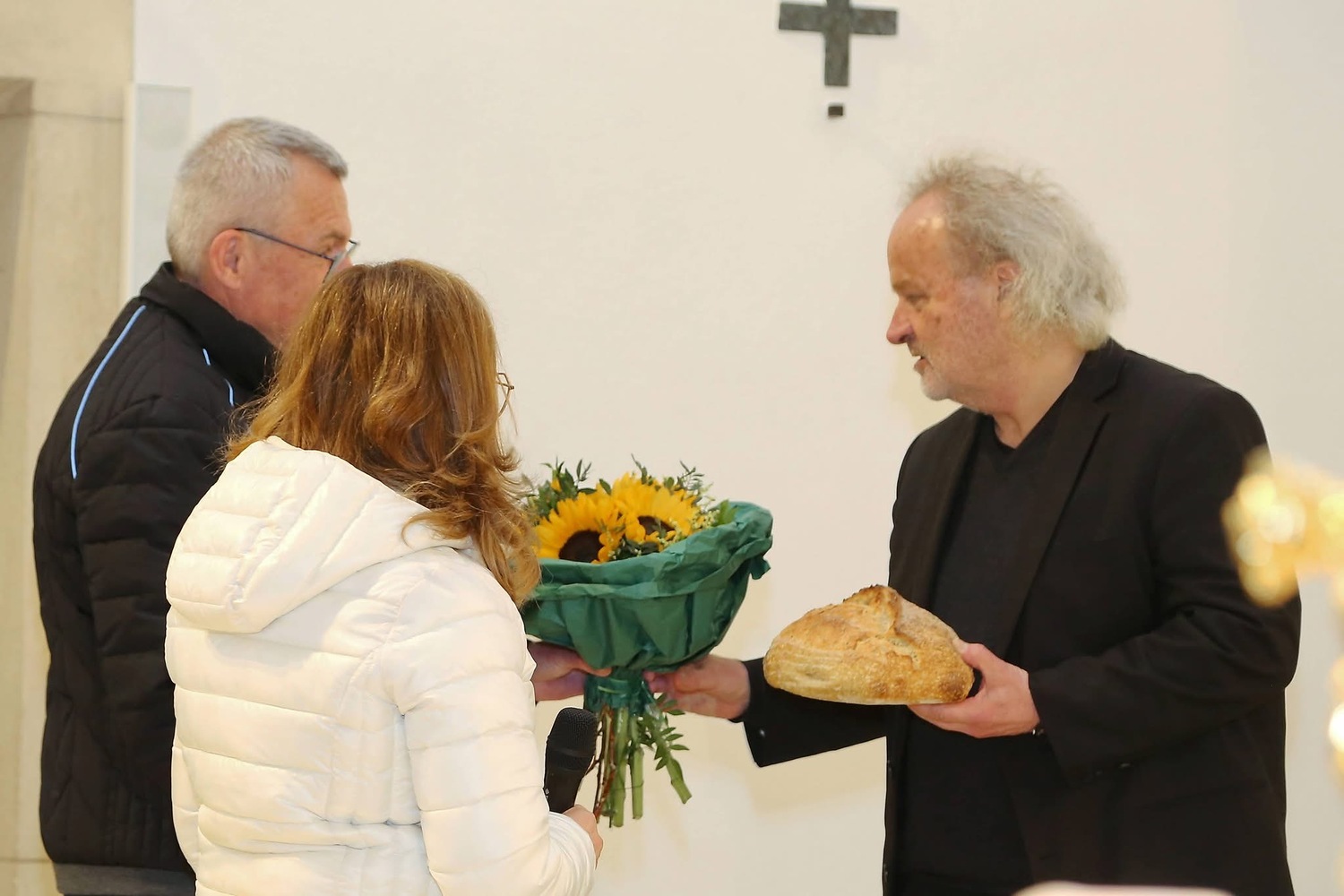 Dankgeschenke an alle Mitwirkenden waren Sonnenblumen und Brot.