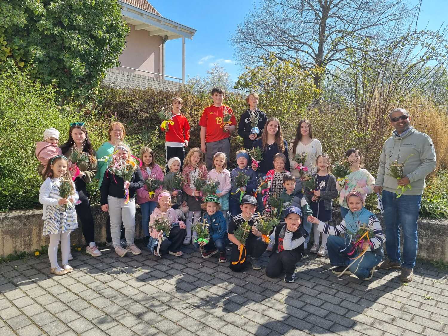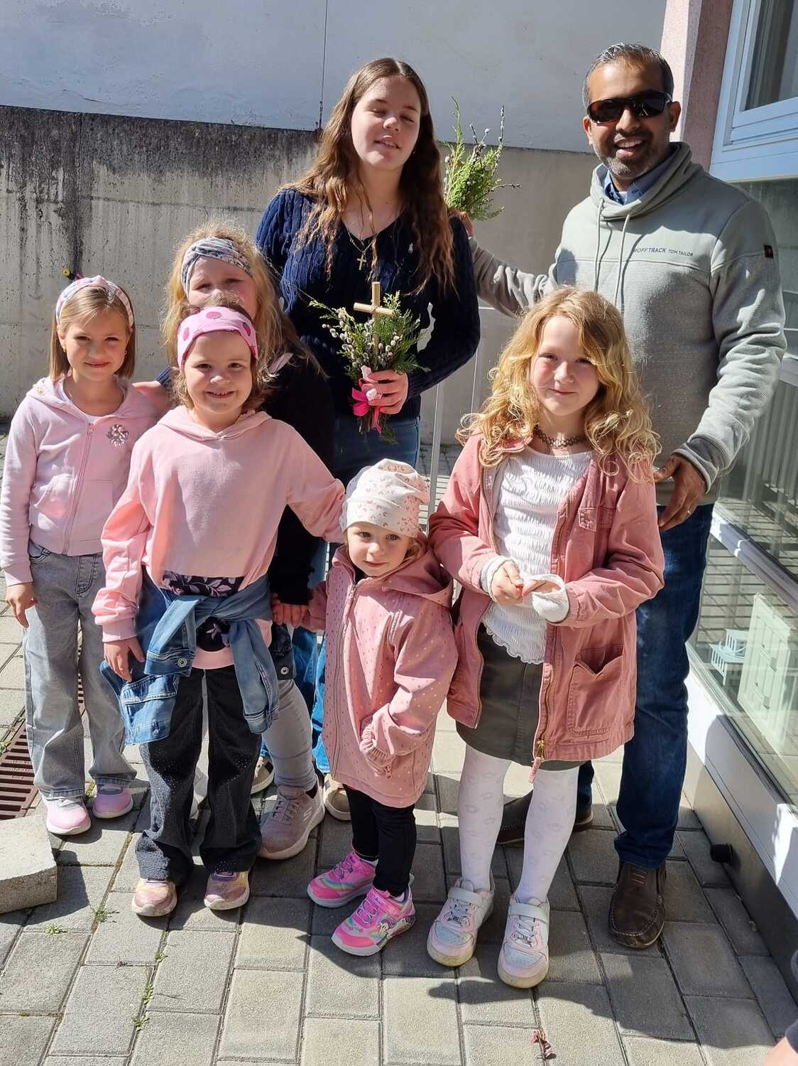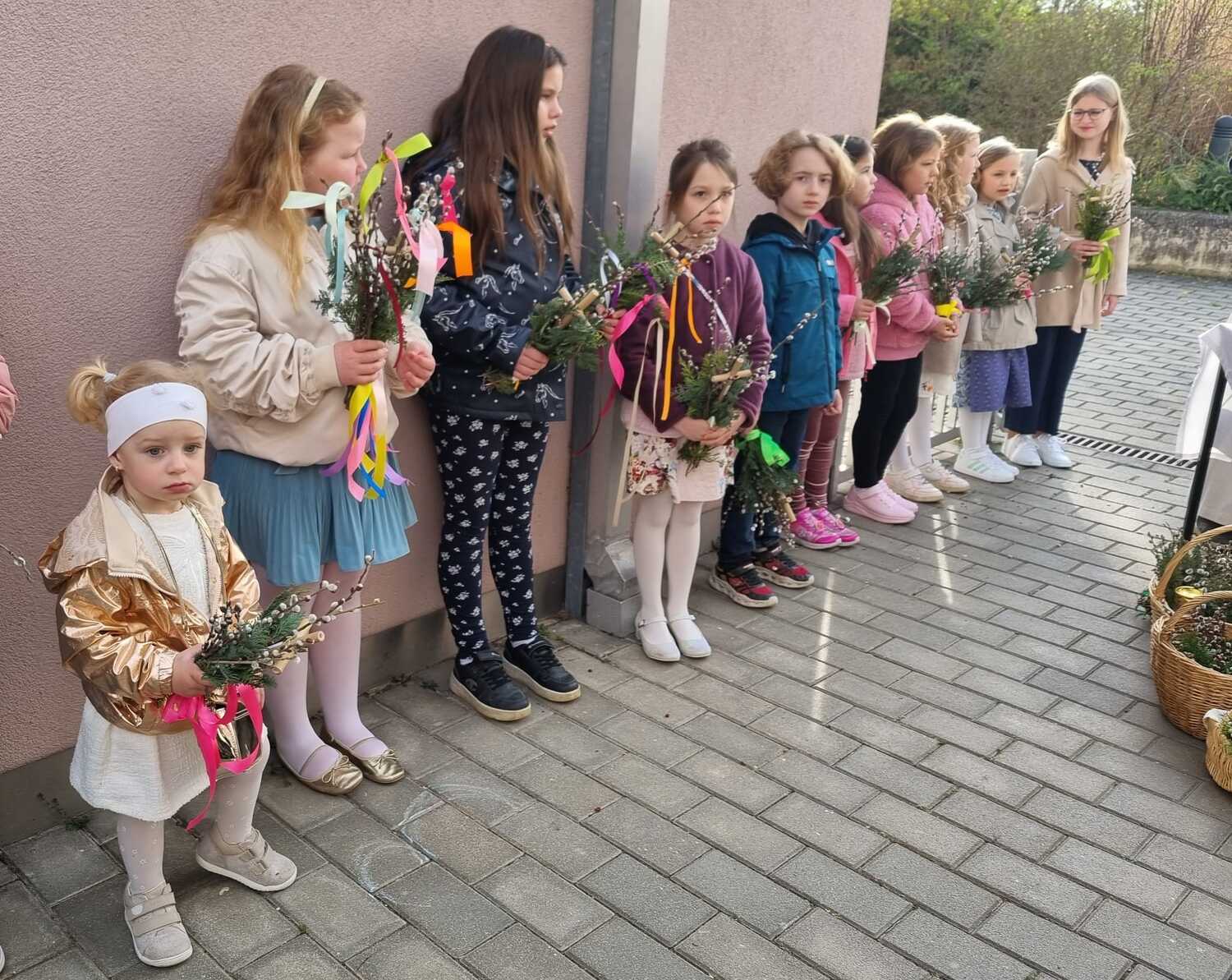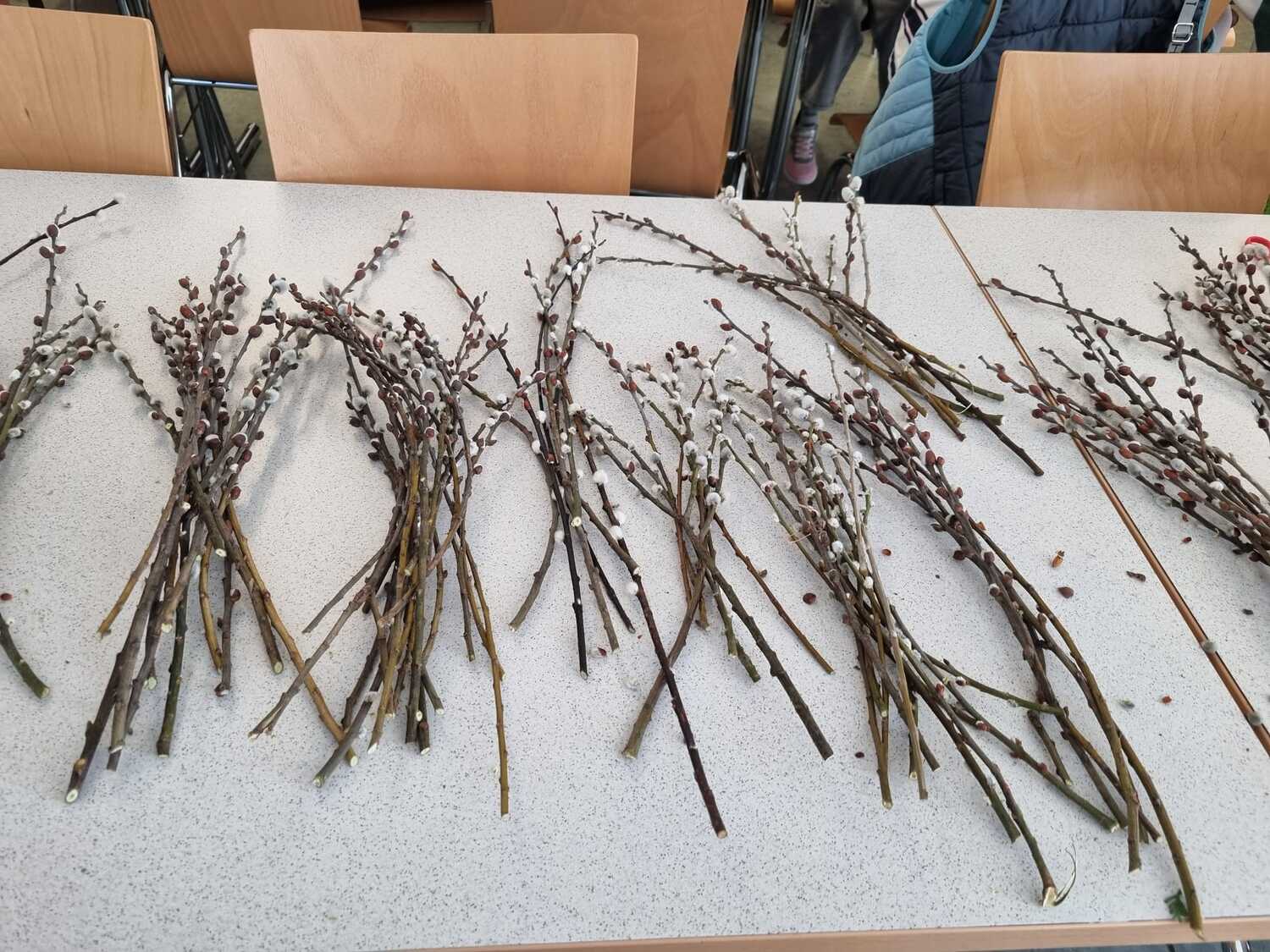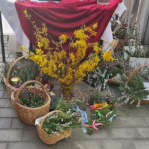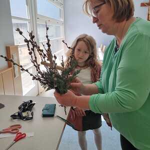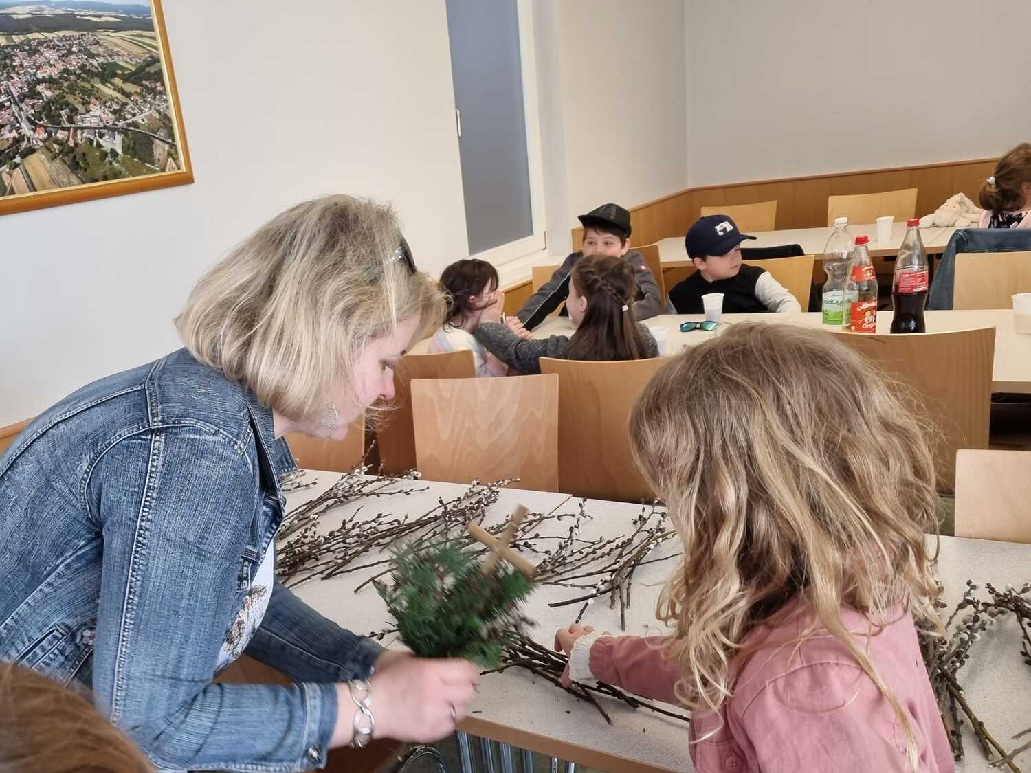In der Woche vor Palmsonntag trafen sich die Kinder zum gemeinsamen Palmbuschenbinden. Diese werden am Palmsonntag gesegnet und sind ein Zeichen des Lebens und des Sieges über den Tod.