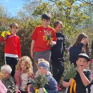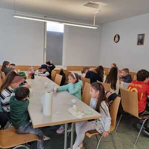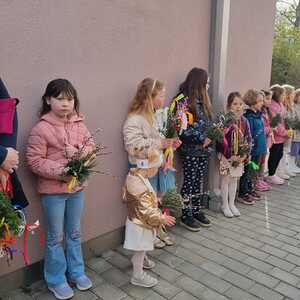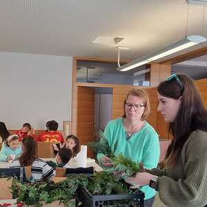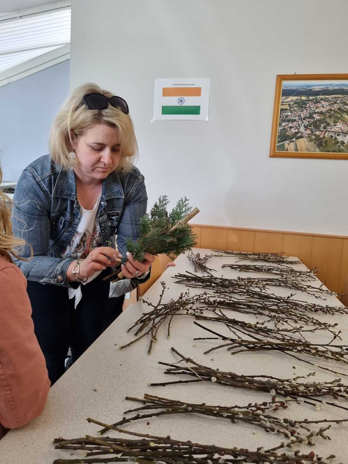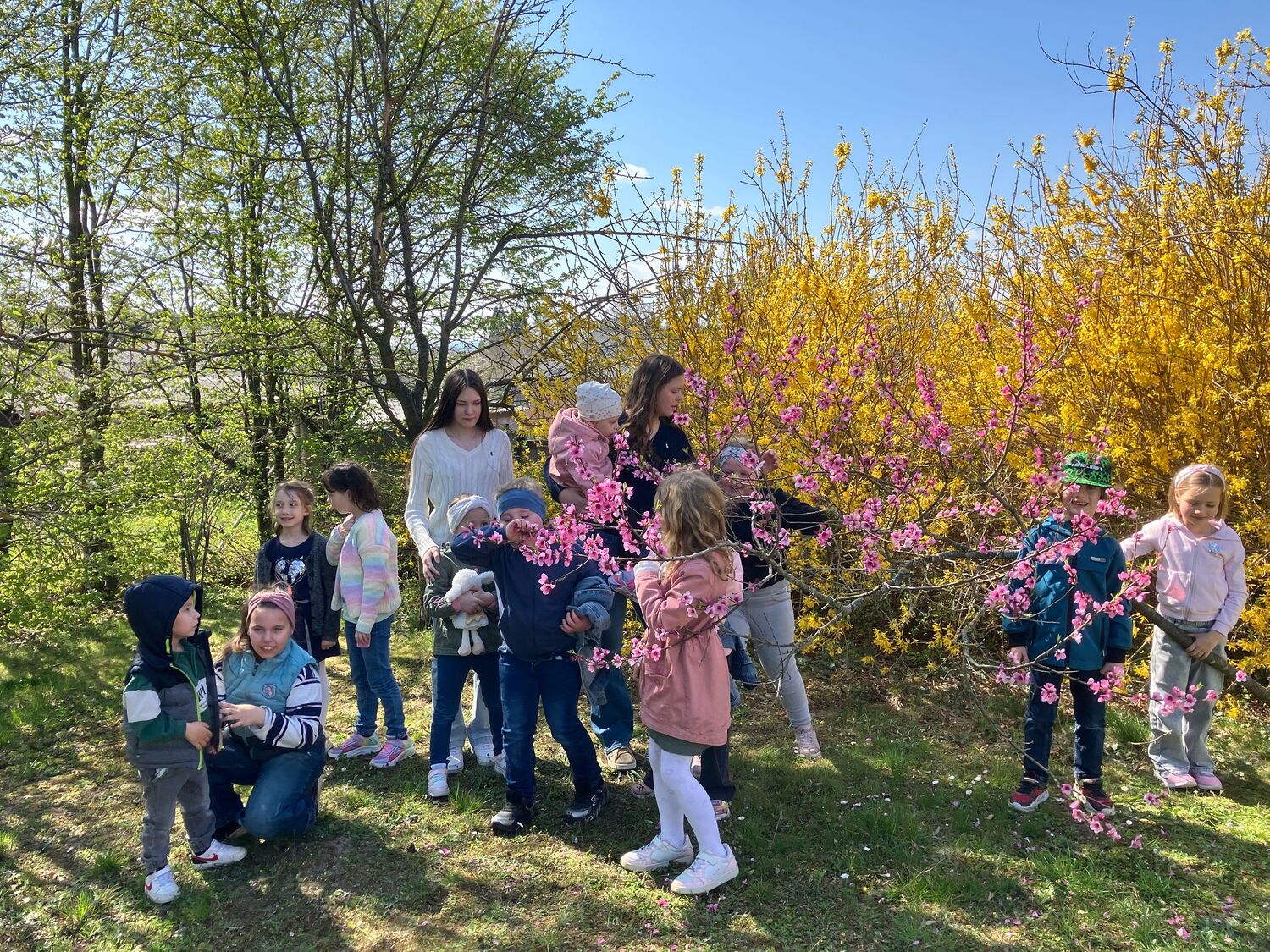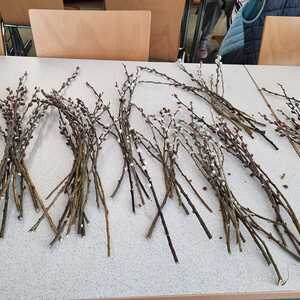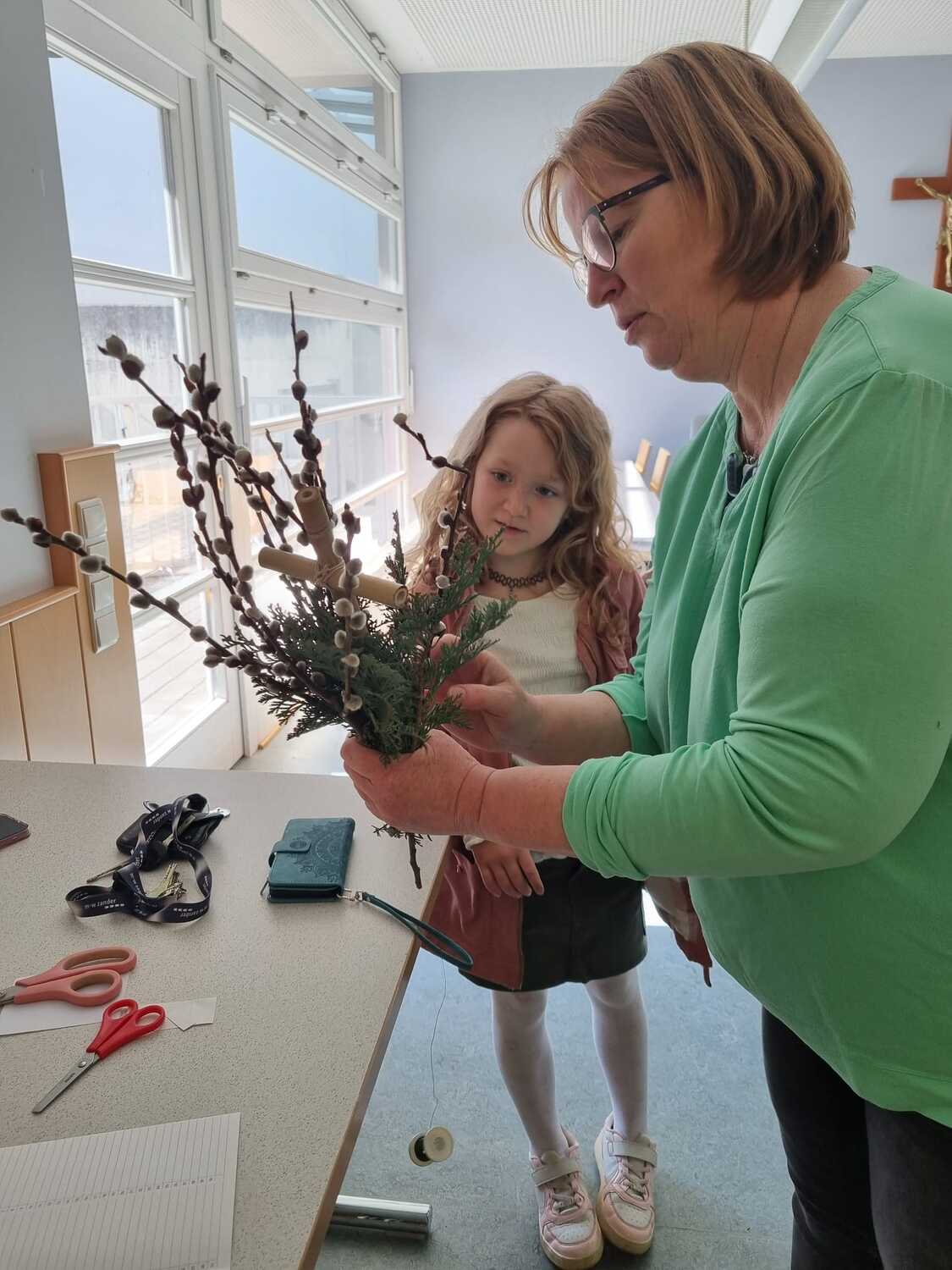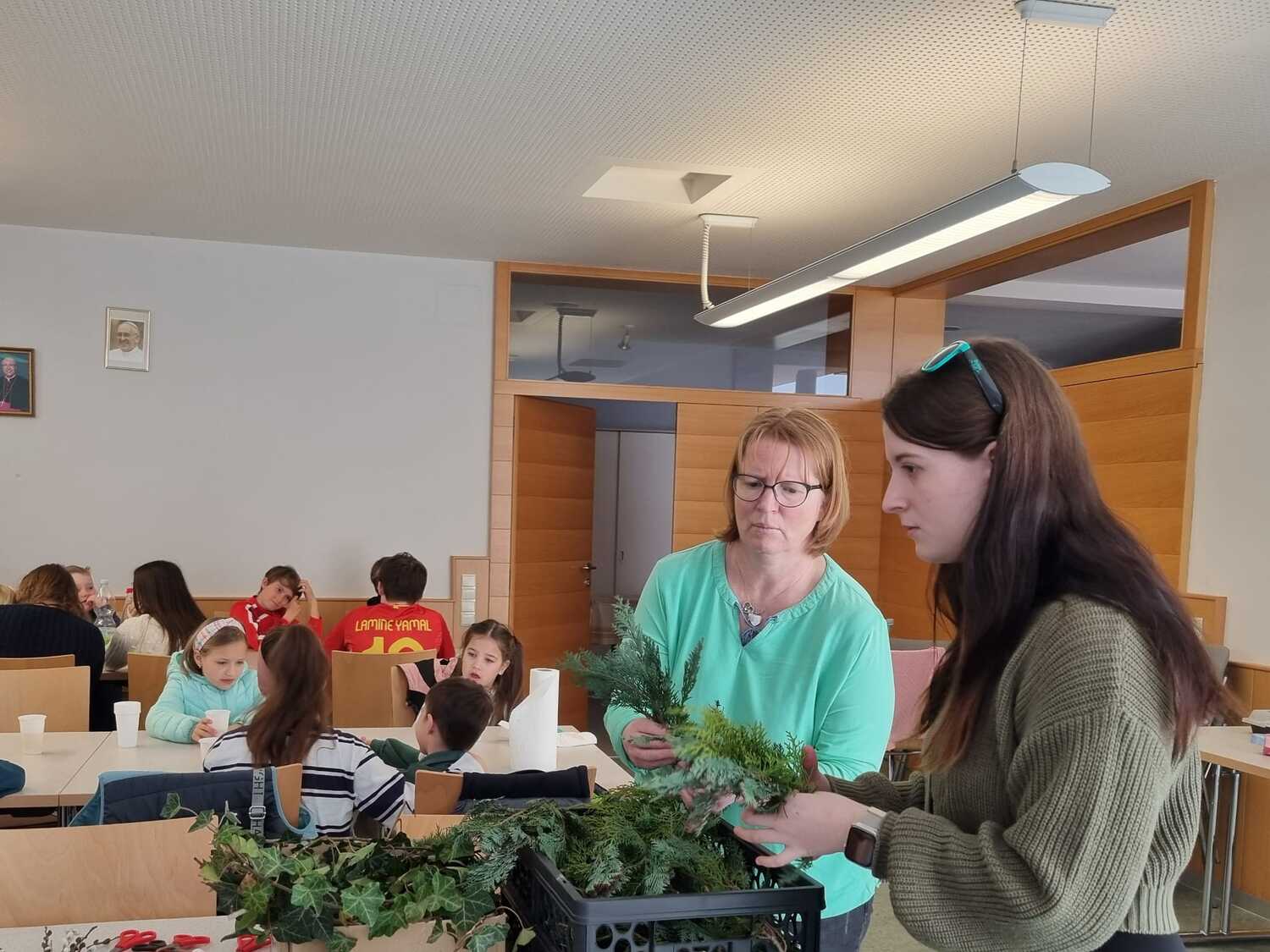 In der Woche vor Palmsonntag trafen sich die Kinder zum gemeinsamen Palmbuschenbinden. Diese werden am Palmsonntag gesegnet und sind ein Zeichen des Lebens und des Sieges über den Tod.