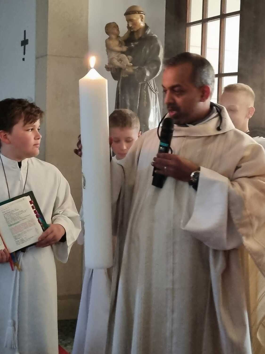 In der Osternacht bricht die Stille durch den erlösenden Ruf, dass Christus als das Licht der Welt immer gegenwärtig ist. Der Stein am Eingang des Grabes ist weg, das Grab ist leer – ER LEBT!