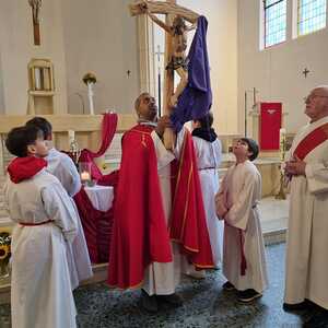 Am Karfreitag um 15 Uhr – der Todesstunde Jesu – wird in besonderer Form des Todes gedacht. Im Mittelpunkt steht die Kreuzverehrung sowie das Fürbittgebet für die Kirche und die ganze Welt.