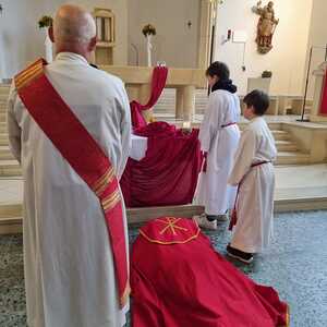 Am Gründonnerstag gedenken wir beim feierlichen Gottesdienst zum letzten Abendmahl der Einsetzung der Eucharistie. In der Fußwaschung zeigen wir die dienende Liebe, wie es uns Jesus vorgemacht hat.