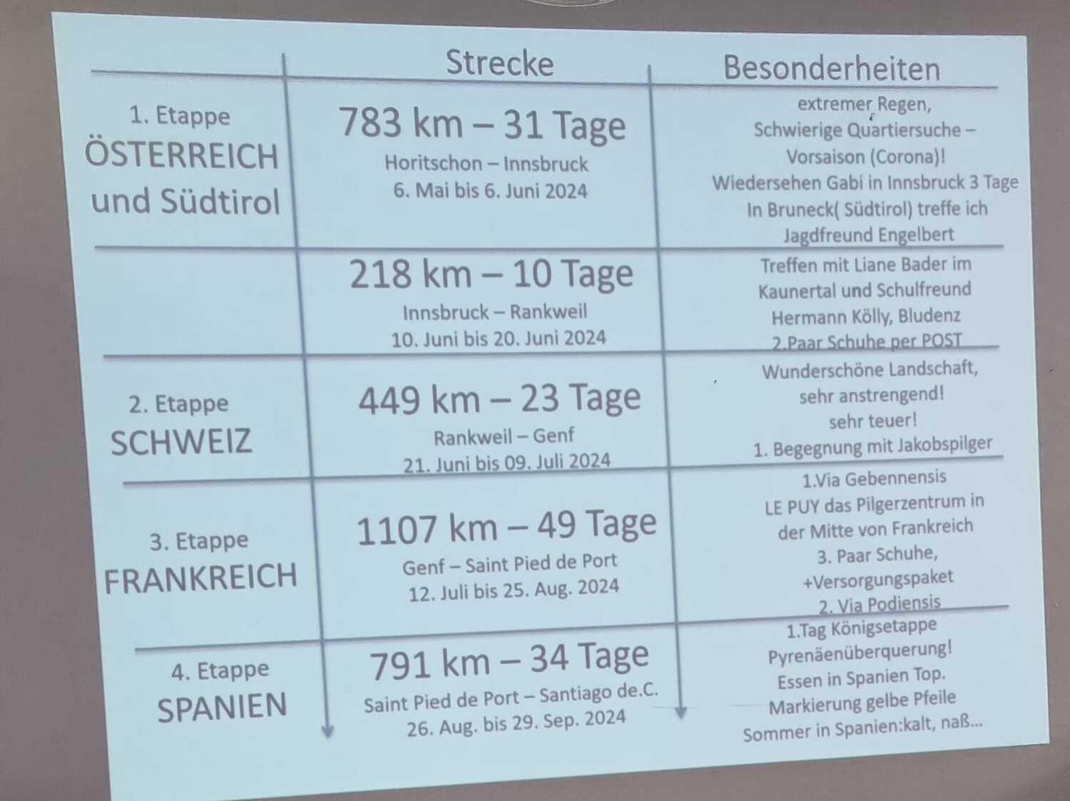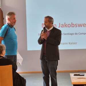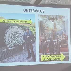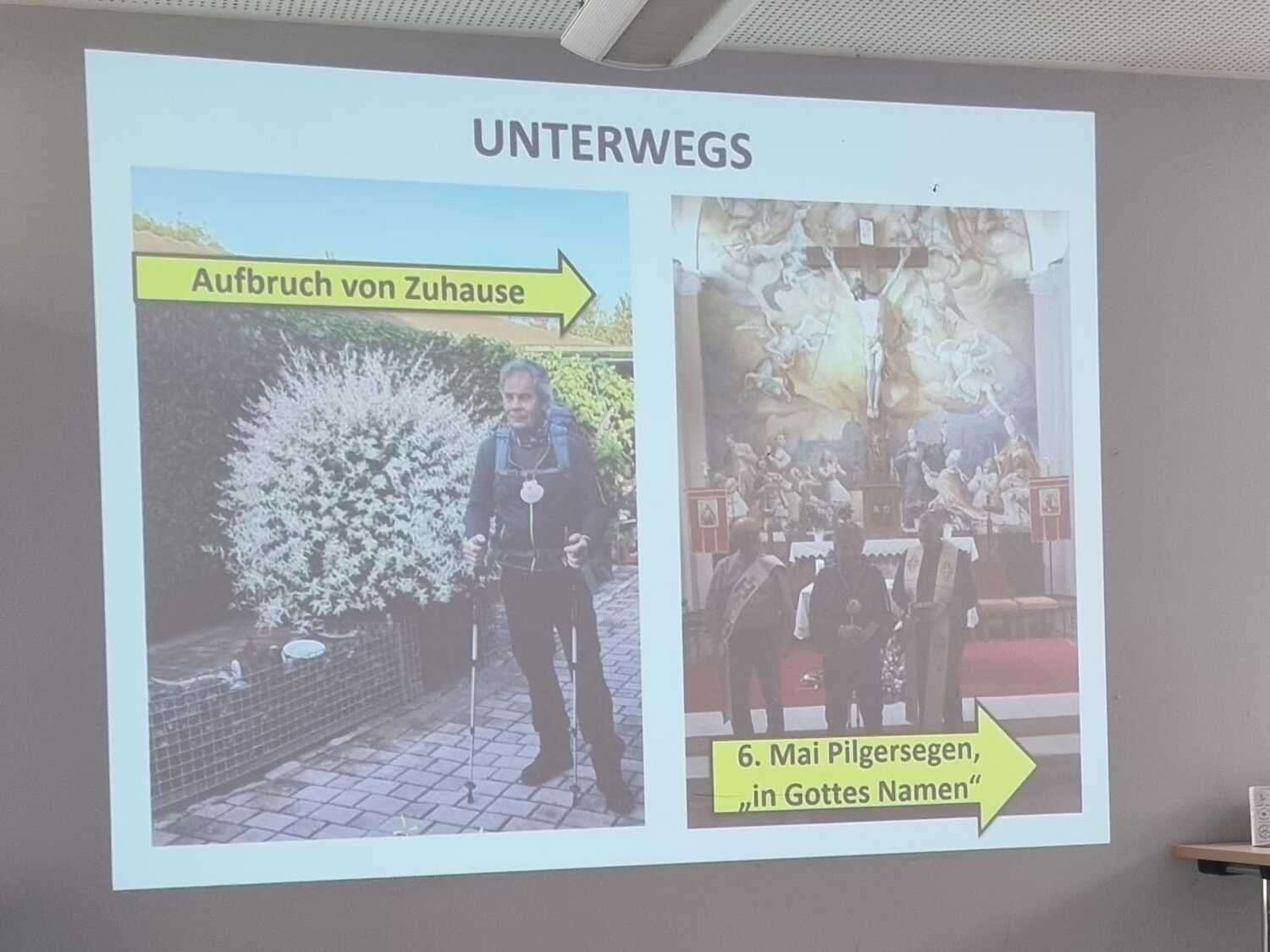 Viele interessierte Zuhörer:innen waren gekommen, um seinen persönlichen Erfahrungen, Herausforderungen und spirituellen Eindrücken zu lauschen. Der Vortrag gab nicht nur Einblick in die körperlichen und logistischen Aspekte einer solchen Pilgerreise, sondern auch in die inneren Beweggründe und Erkenntnisse, die Hermann unterwegs gesammelt hat.
