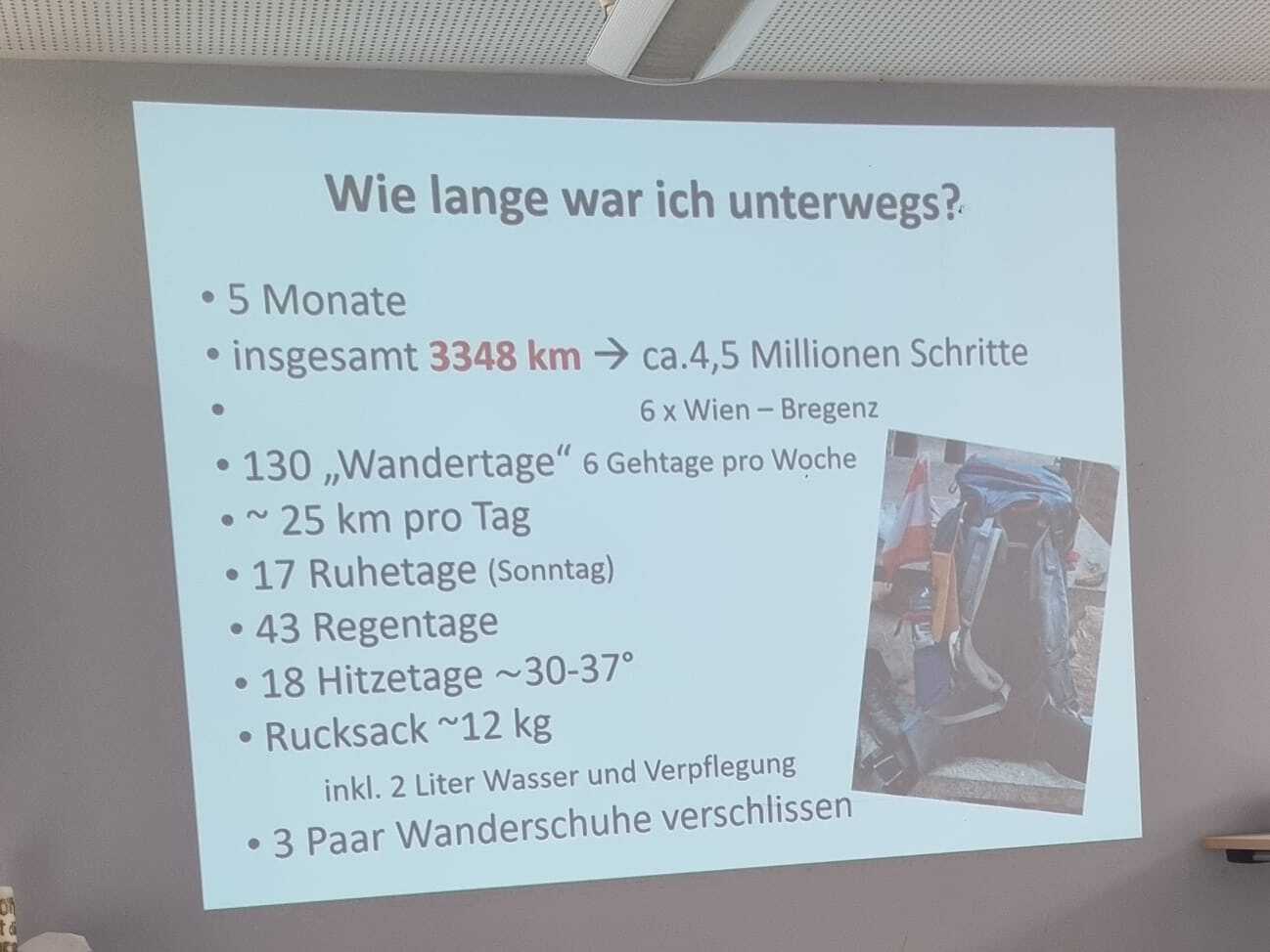 Unter dem Titel „Mein Jakobsweg“ erzählte er von seiner Wanderung, die am 6. Mai mit dem Pilgersegen in Horitschon begann und ihn nach 3.348 Kilometern bis nach Santiago de Compostela führte.