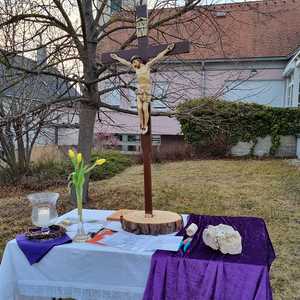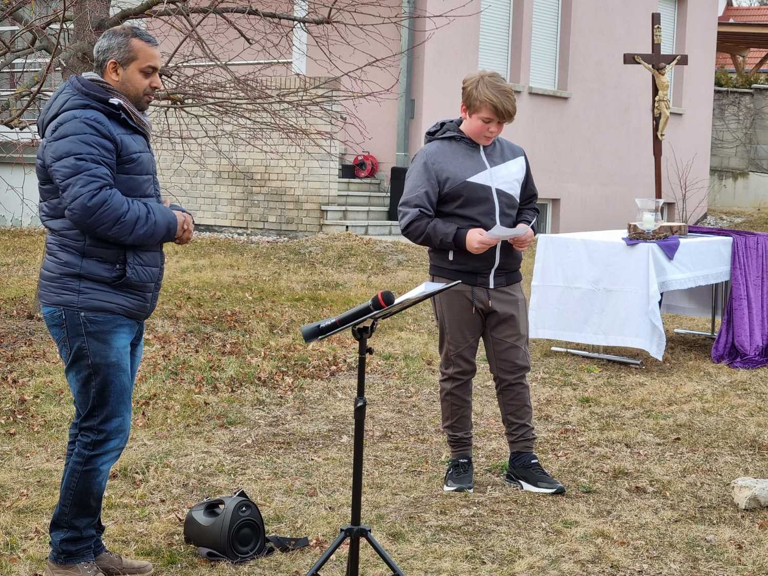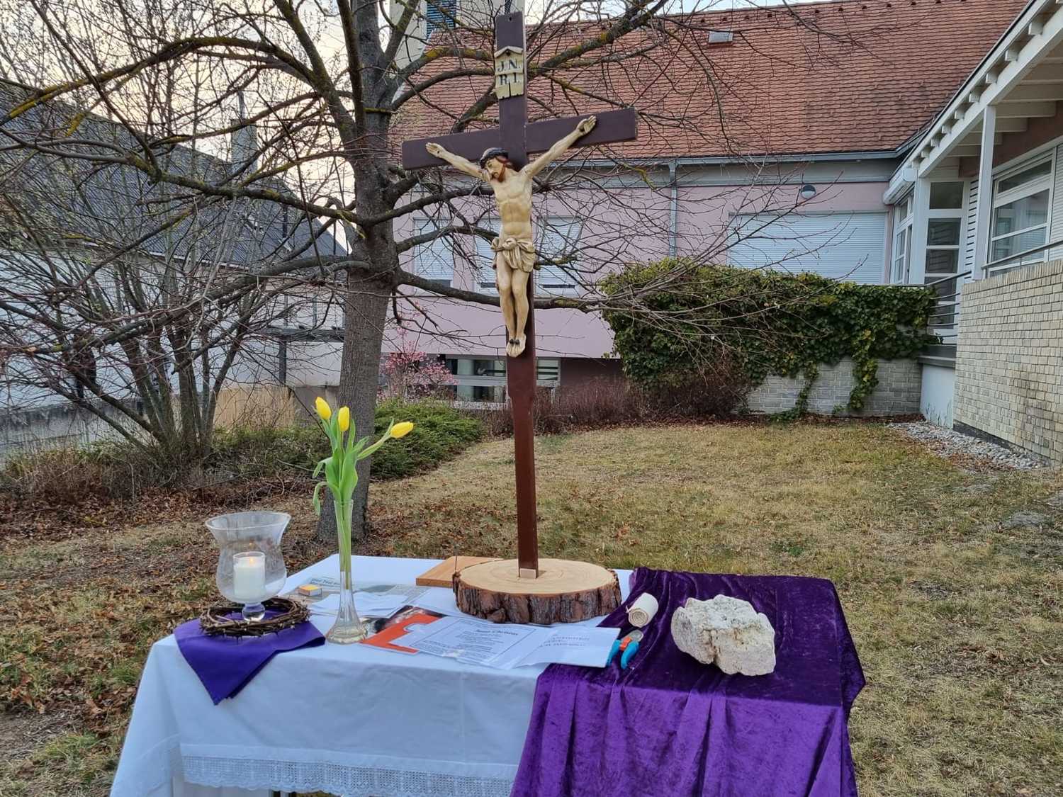 Am Donnerstag, dem 17. März haben sich die Erstkommunionkinder und Firmlinge im Pfarrhofgarten Lackenback getroffen um den Leidensweg Jesu zu betrachten. Jede Station wurde nach einer kurzen Beschreibung mit einem für Kinder gut nachvollziehbarem Thema in Verbindung gebracht und in unseren Alltag übersetzt.