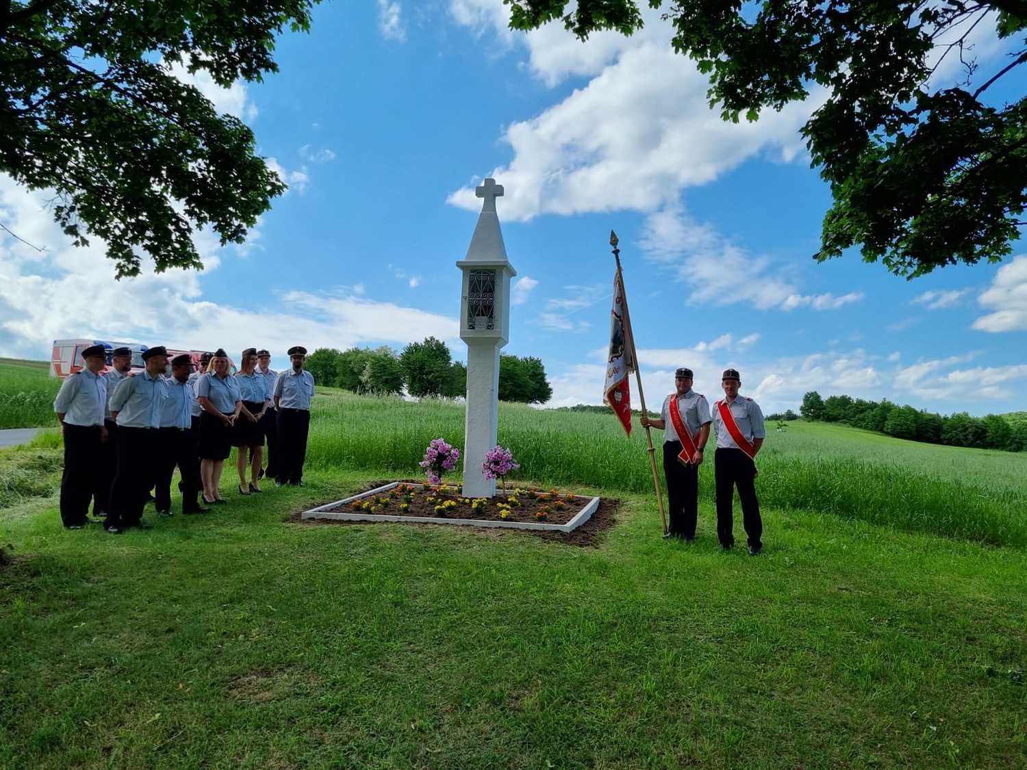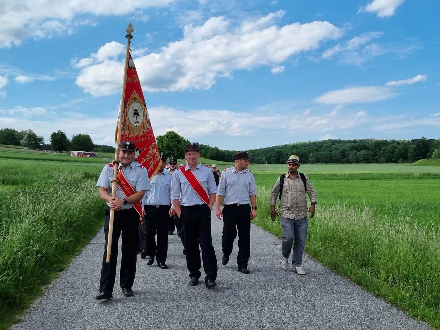 Am Sonntag, dem 22. Mai traf sich eine Schar gut gelaunter Wanderer bei der Josefsäule und startete nach einer kurzen Maiandacht durch die Natur Richtung Florianimarterl. Dort haben uns die Lackenbacher Florianijünger sehr zahlreich erwartet und mit uns die nächste kurze Andacht gestaltet. Gemeinsam, mit den Florianis voran, ging es dann weiter in den Pfarrhofgarten Lackenbach, wo dann um Fruchtbarkeit für Feld und Flur, aber auch um Bewahrung vor Unwettern gebetet wurde.
