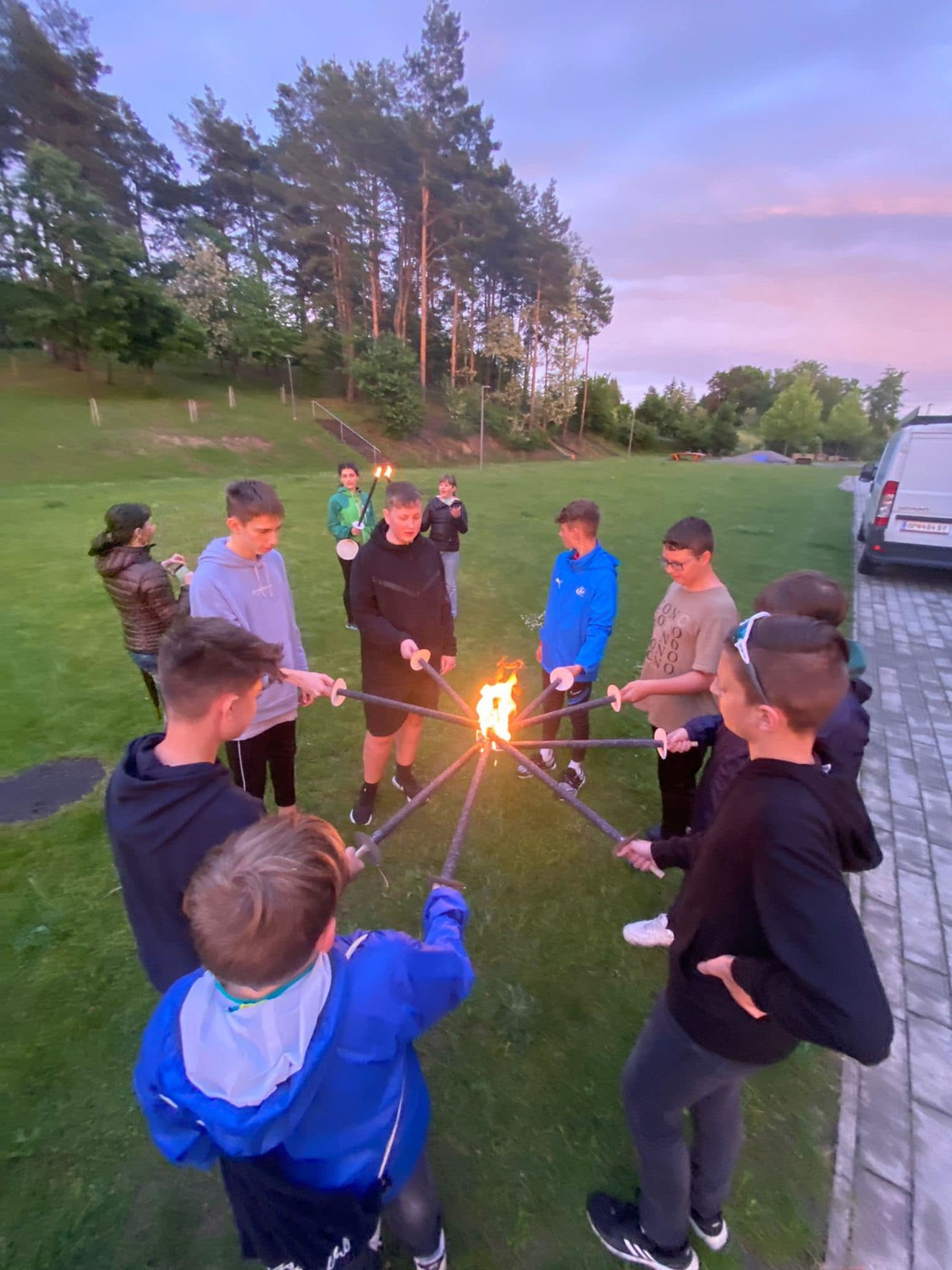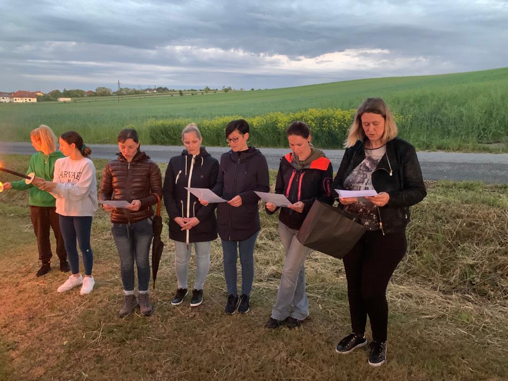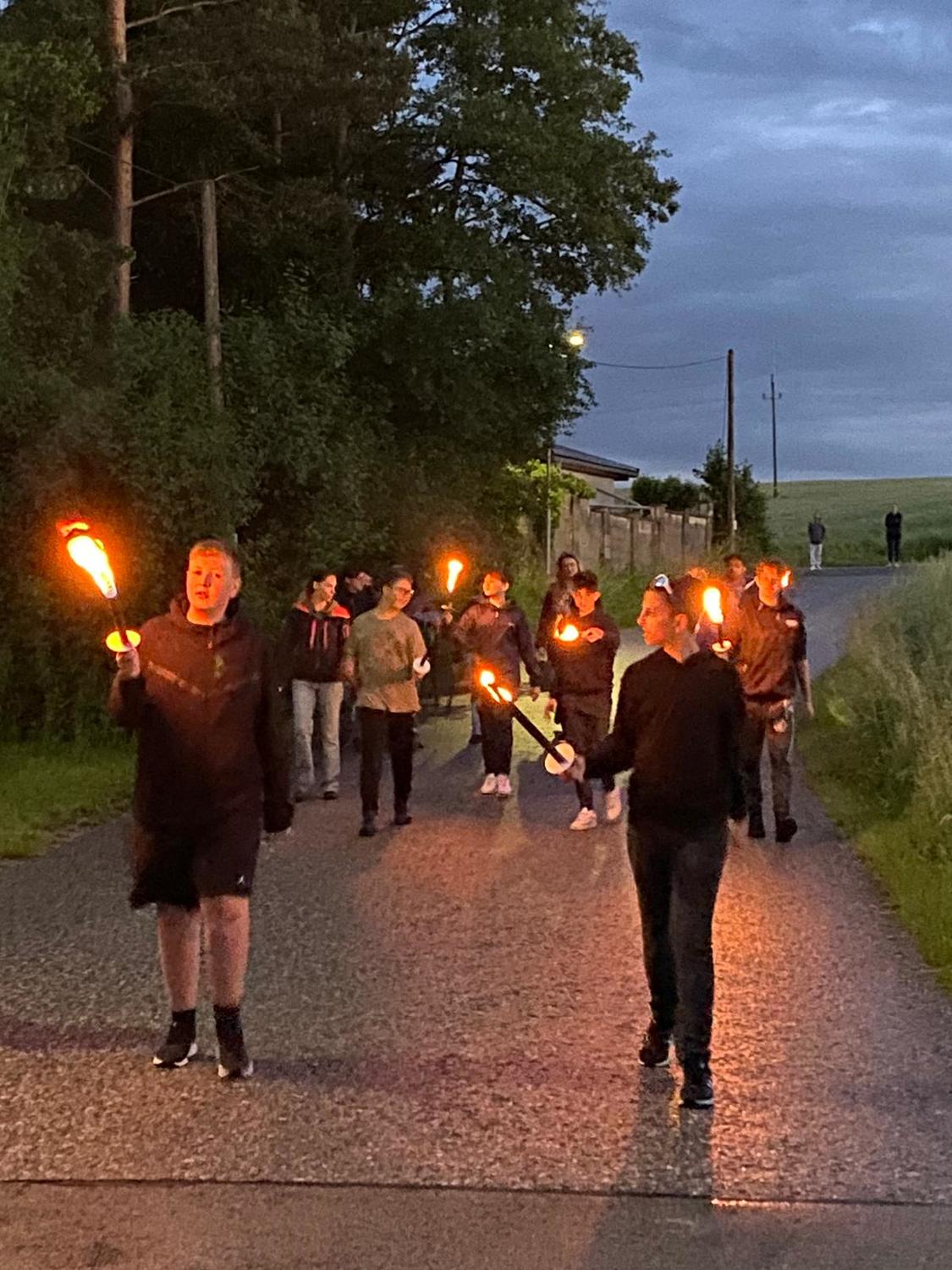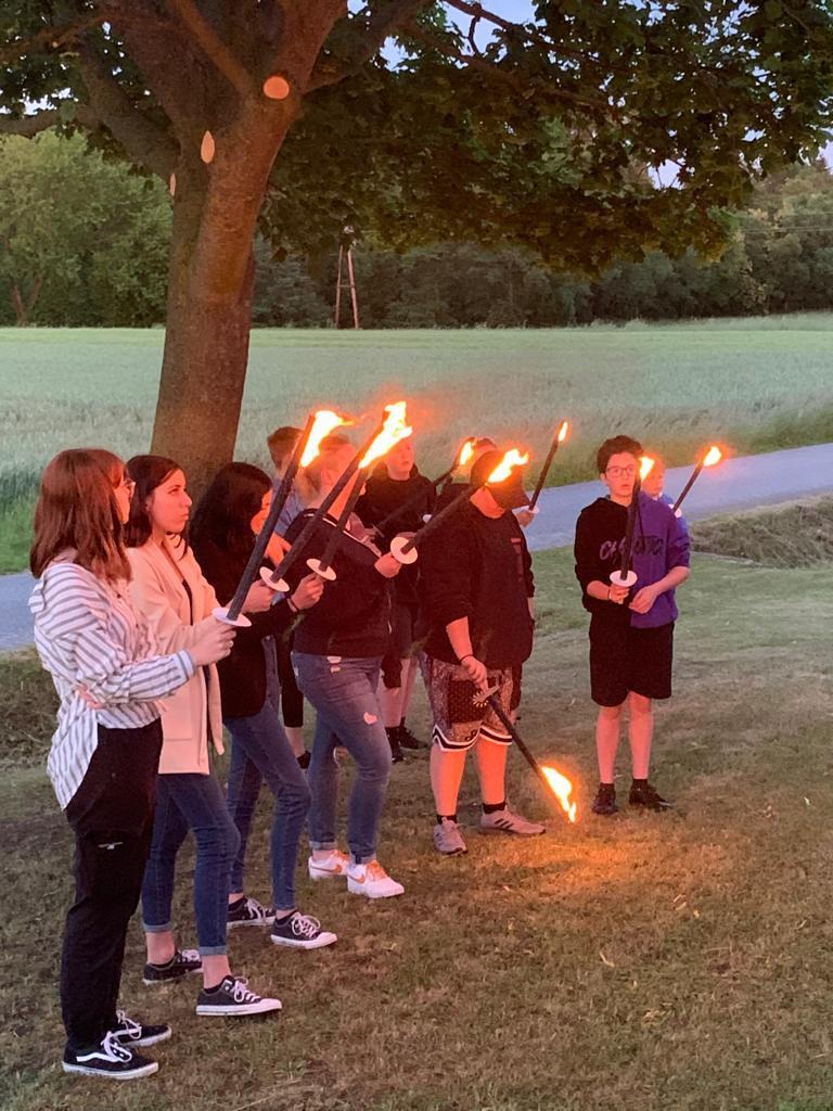 Bevor die Gruppe dann mit ihren Fackeln zur Wanderung aufbrach, gab es noch eine kleine Jause. In wunderbarer Abendstimmung mit bester Laune marschierten die Jugendlichen zur Florianisäule, wo der stimmungsvolle Abend mit einer Andacht endete.