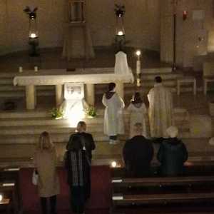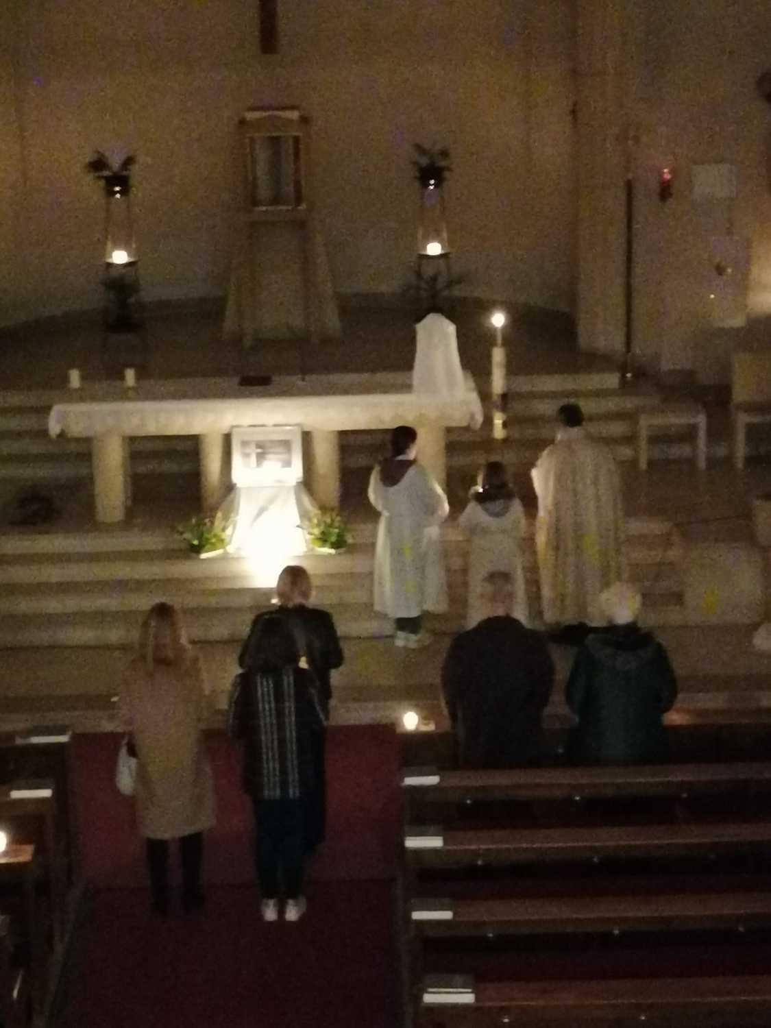 Beim Einzug in die noch völlig dunkle Kirch ruft der Priester dreimal: