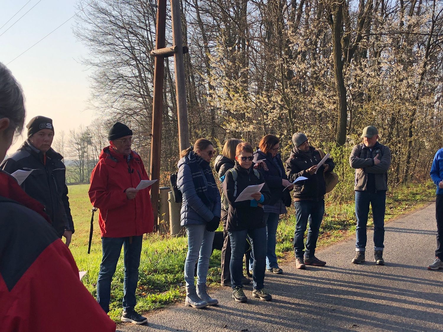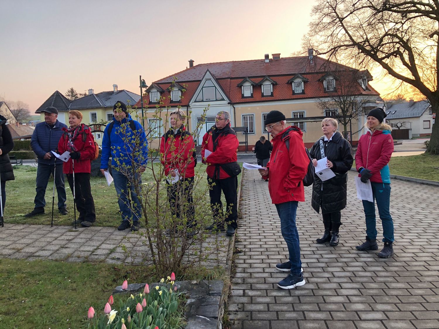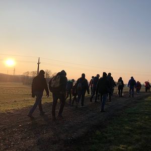 Vor dem Start am Morgen trafen sich alle zu einer kurzen Besinnung beim Pfarrhof Kobersdorf. Von dort marschierte die Gruppe nach Weppersdorf, wo in der Kirche die 2. Station gebetet wurde und sich noch einige Wanderer dazugesellten. Die 3. Station wurde bei Sonnenaufgang auf dem Weg nach Lackenbach gebetet. Meditative Texte erinnerten dabei an das Leben des Menschen als Weg zu Gott.