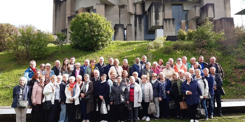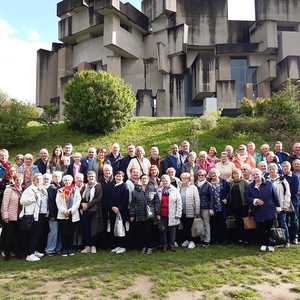 Beendet wurde der Ausflug mit einem Besuch der Wotrubakirche am Georgenberg in Wien-Mauer, welche in den 70-ger Jahren des 20. Jahrhunderts nach Entwürfen des Bildhauers Fritz Wotruba erbaut wurde. Das Kirchengebäude ist stilistisch dem Brutalismus zuzurechnen. Die Wotrubakirche, die heute zu den touristischen Sehenswürdigkeiten von Wien zählt, wirkte auf die knapp 60 Reiseteilnehmer sehr beeindruckend.