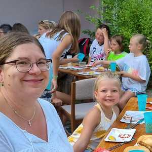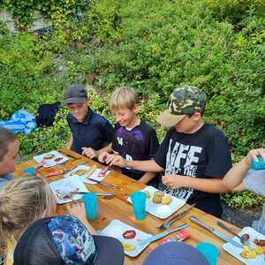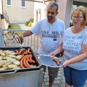 Um 17 Uhr trafen wir uns zu einer gemeinsamen Andacht im Pfarrsaal, wo wir zusammen unser Abendgebet sprachen. Anschließend wurde im Hof gegrillt und wir konnten beim gemeinsamen Abendessen den Tag ausklingen lassen.