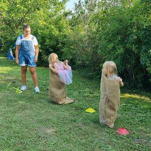 Um 15 Uhr versammelten sich alle im Pfarrhof Lackenbach. Nach einer Begrüßungsrunde spielten wir im schattigen Garten. Wir hatten für die Kinder verschiedene Spiele aufgebaut z.B: Sackhüpfen, Dosen werfen, Fußball, Boccia, Federball, Ball über die Schnur, Uno…. . Doch besonders Spaß machte unsere Wasserbombenschlacht, wo niemand trocken blieb –sogar Herrn Pfarrer Shinto haben wir erwischt. J
