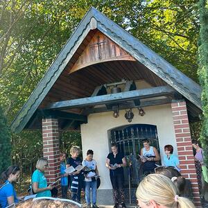Bei der 1. Station ein Marterl mit einer Pietastatue wurden meditative Gedanken und Gebete gelesen und ein Marienlied gesungen. Danach ging es weiter Richtung Lindgraben zum Ökumenischen Kreuz. Bei zwei weiteren Stationen war Zeit zum Innehalten. Angeleitet durch meditative Texte, Gesprächsanregungen bzw. auch in Stille nachzudenken ging es weiter bis zur Florianikapelle.
