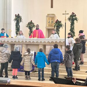 Die Kinder beeindruckten sowohl bei der persönlichen Vorstellung und den gestalteten Kyrie-Texten als auch mit ihrern bezaubernden gesanglichen Darbietungen, die Frau Religionslehrerin Adele Grill musikalisch liebevoll einstudiert und begleitet hat.