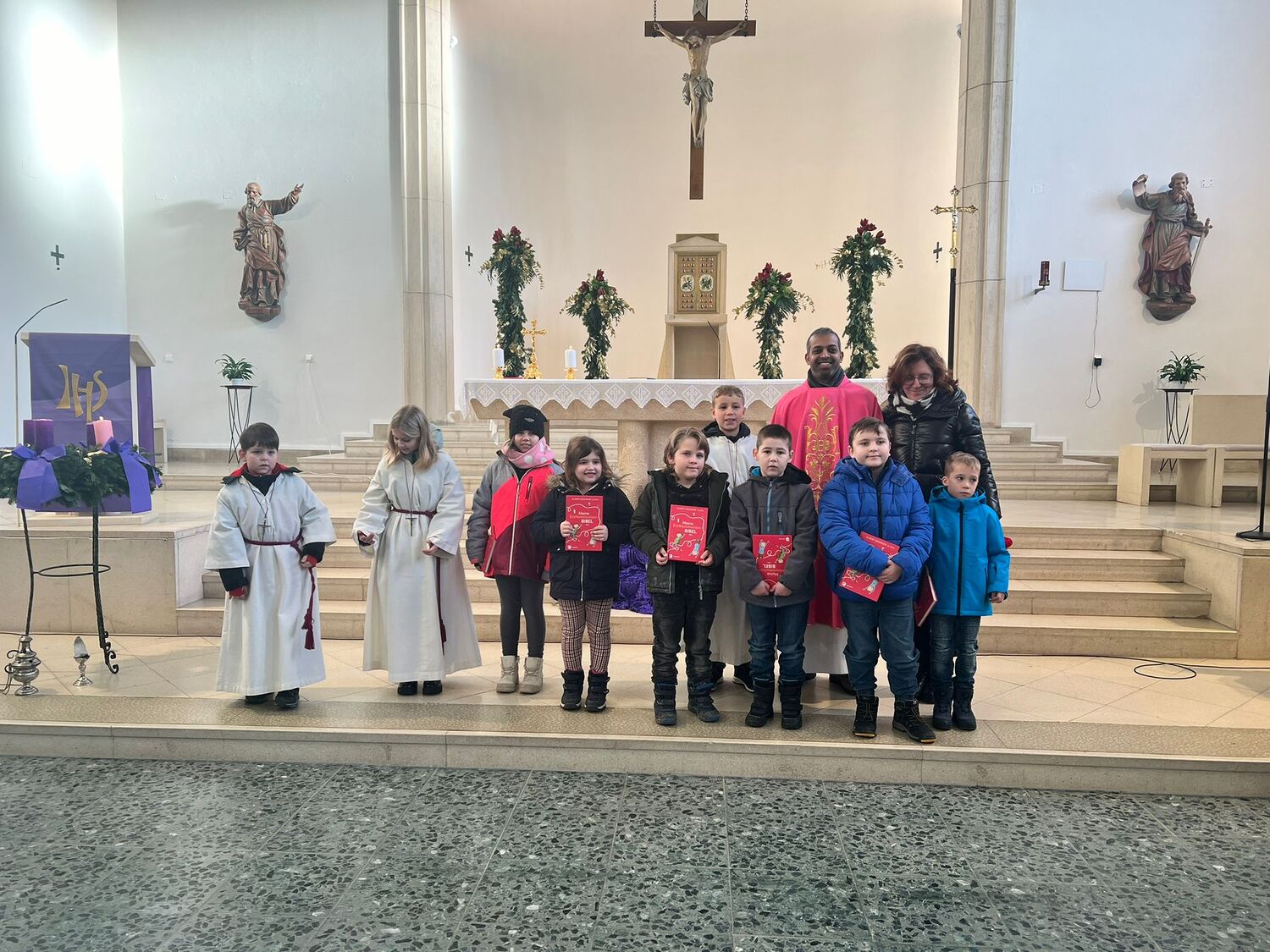 „ In einem Boot – mit Jesus“ so lautet das diesjährige Motto unserer sechs Erstkommunionkinder, die sich am dritten Adventsonntag vorgestellt haben. Mit wie viel Begeisterung die Kinder den Gottesdienst mitgestalteten, davon konnten sich die Messbesucher/innen der vollbesetzten Kirche selbst überzeugen.