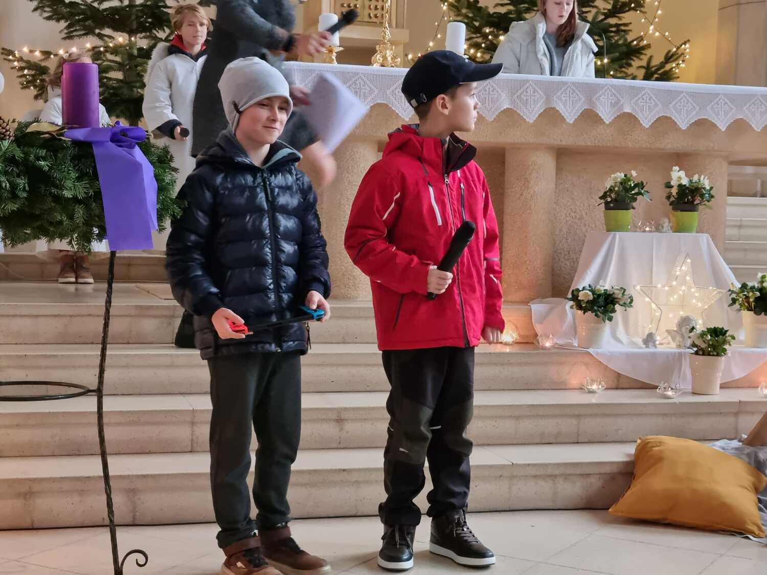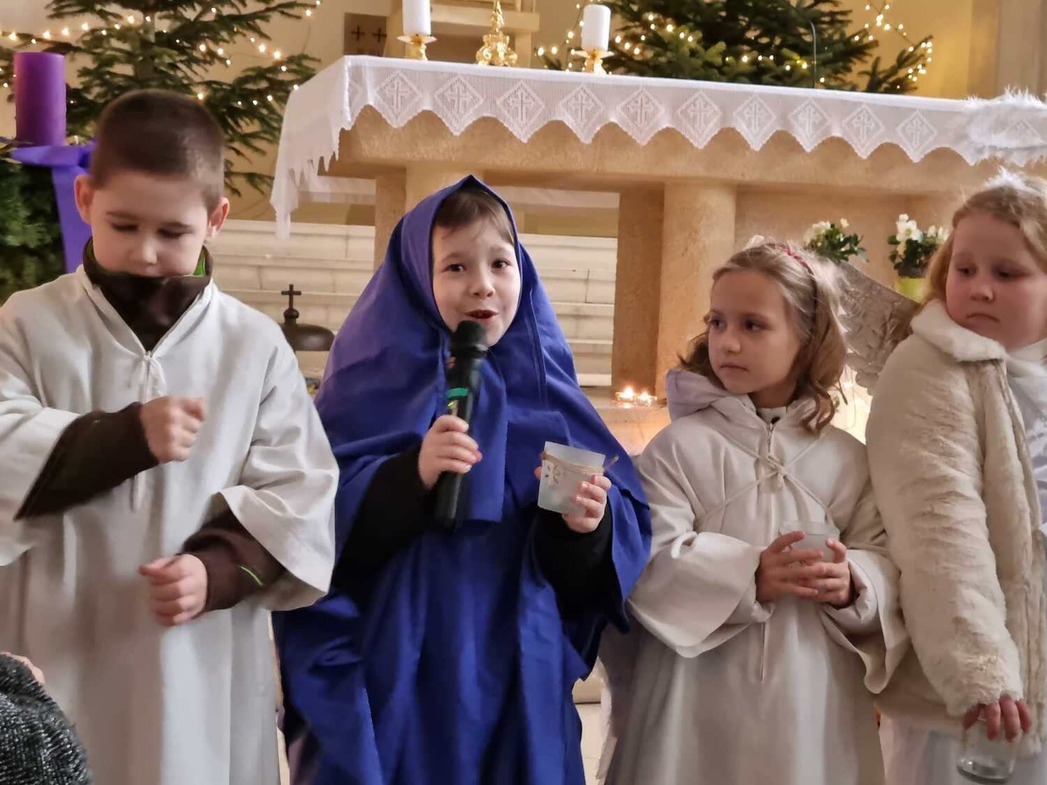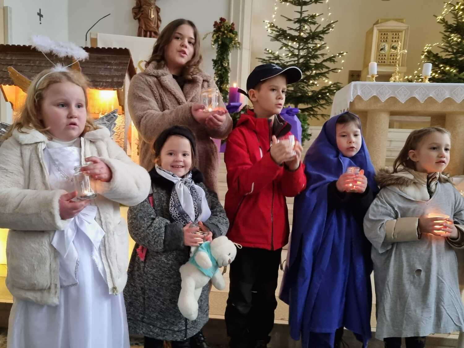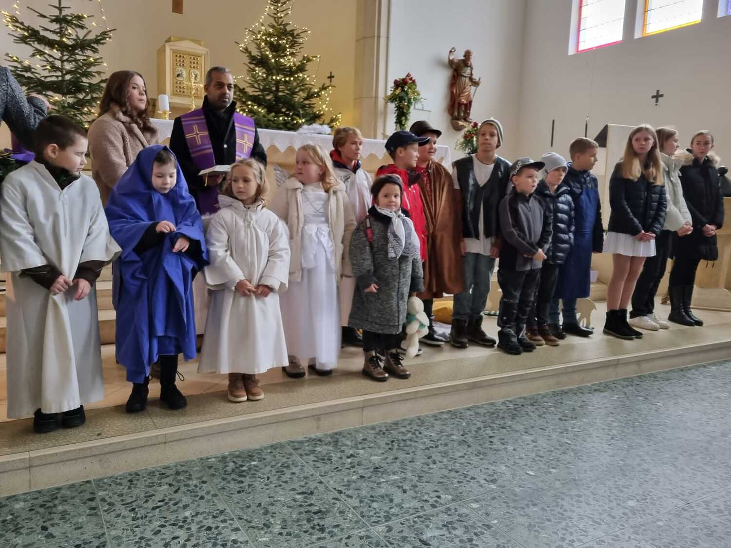 Gemeinsam mit Marie Bauer haben sich die Kindergartenkinder, Volksschulkinder, Kommunionkinder, Firmlinge und Ministrantenkinder Gedanken über Weihnachten gemacht und mit einem Krippenspiel, welches von den ursprünglichen Ereignissen vor über 2000 Jahren in die heutige Zeit reicht.